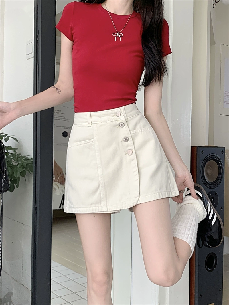 | nameOriginal | Small summer hip-covering wide-leg A-line denim shorts |
