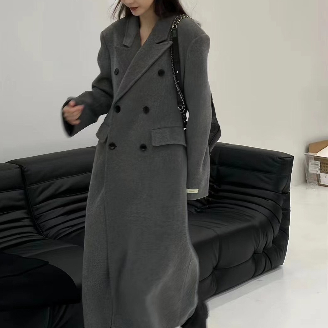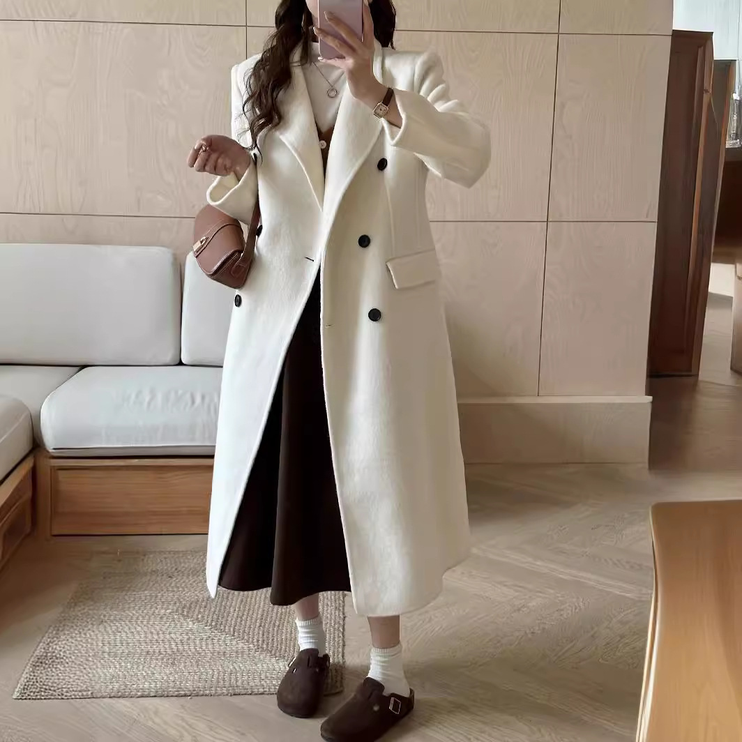 Small waist new double-sided cashmere coat women’s double-breasted suit collar Korean style super waist slimming woolen coat