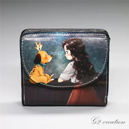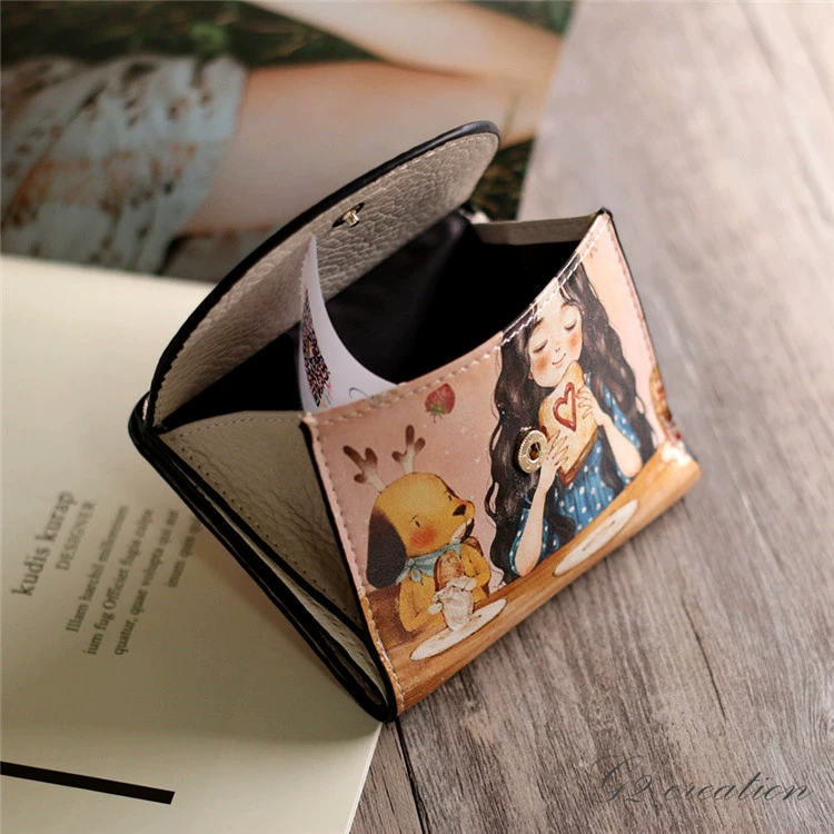 Small wallet women’s horizontal style Internet celebrity buckle small fresh folding thin student Korean version cute cartoon painted card slot wallet