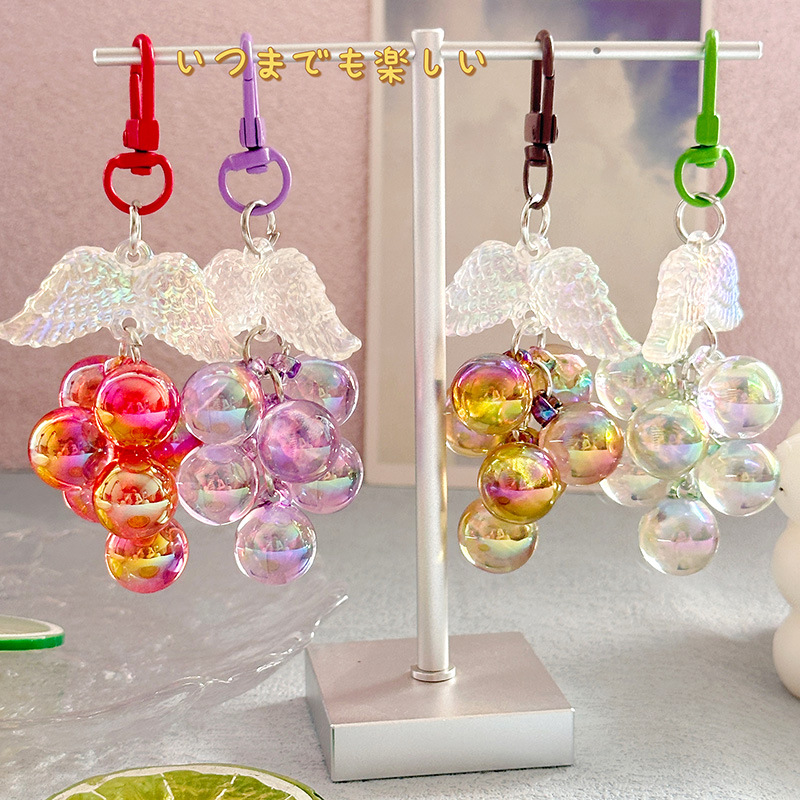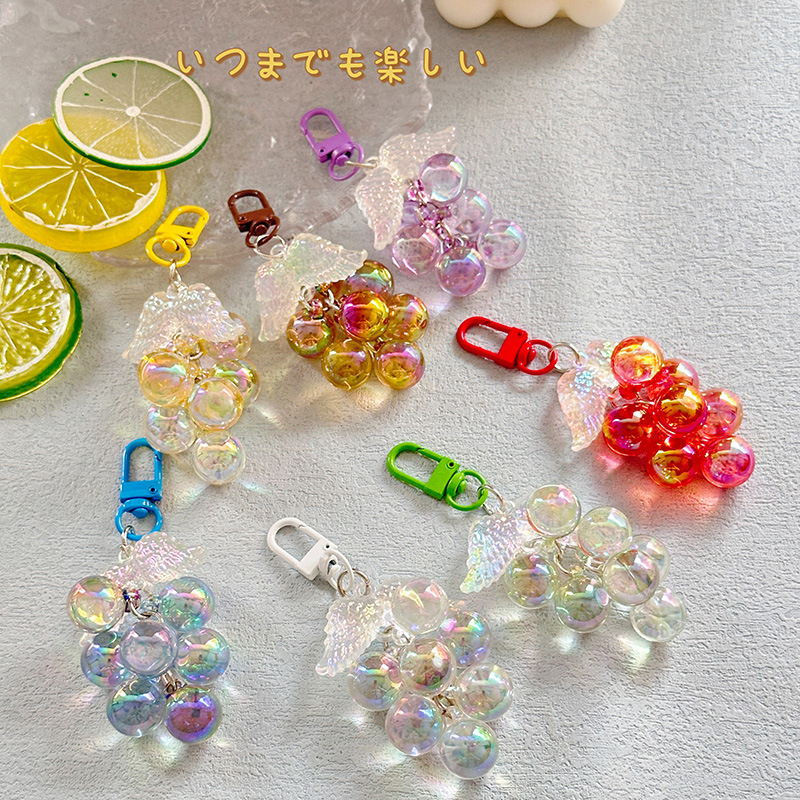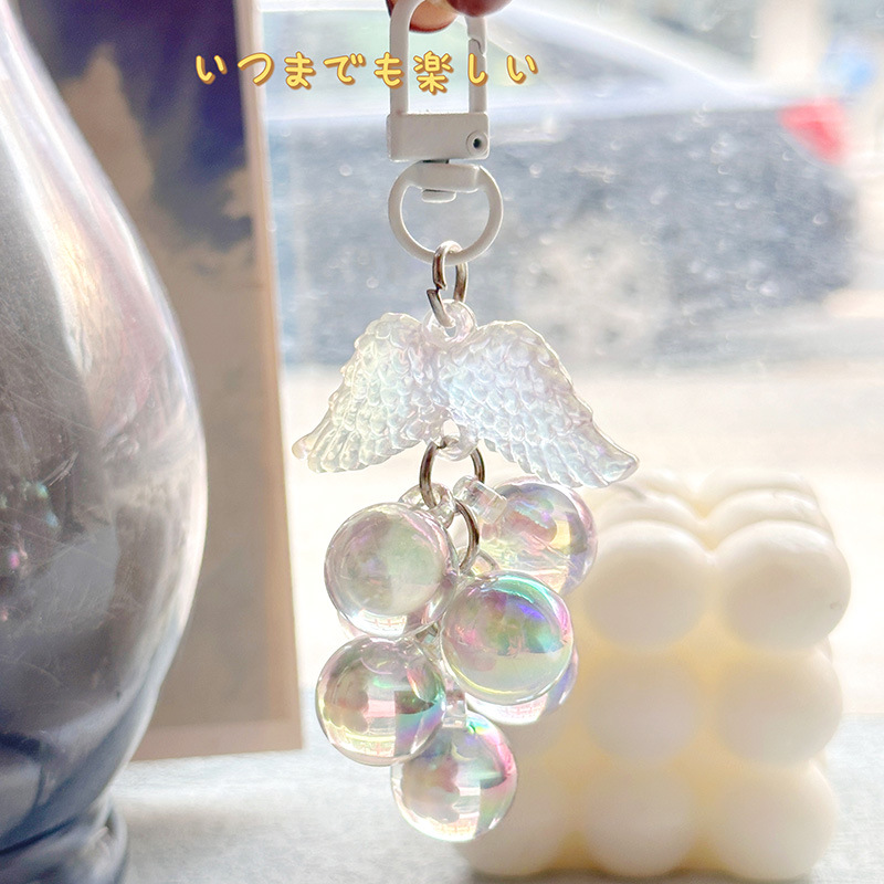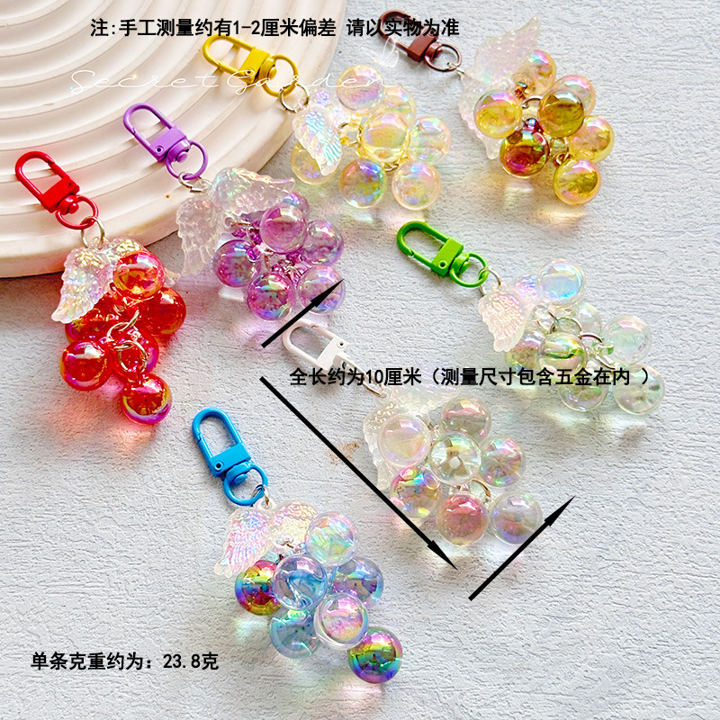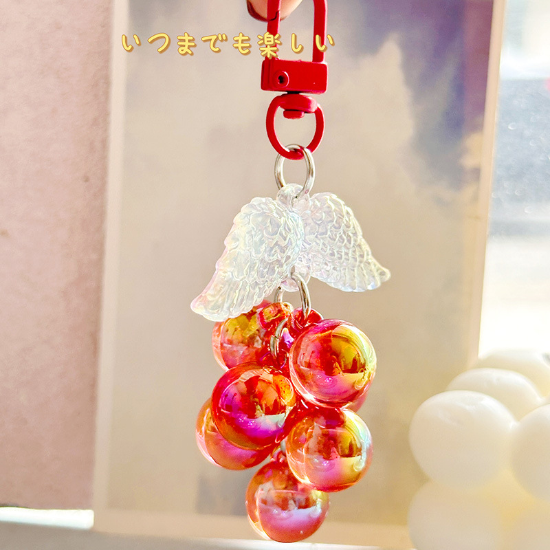 Small Wings Grape String Pendant Beaded Short Mobile Phone Chain Color Keychain Bag Hanging Jewelry Student Gift Wholesale