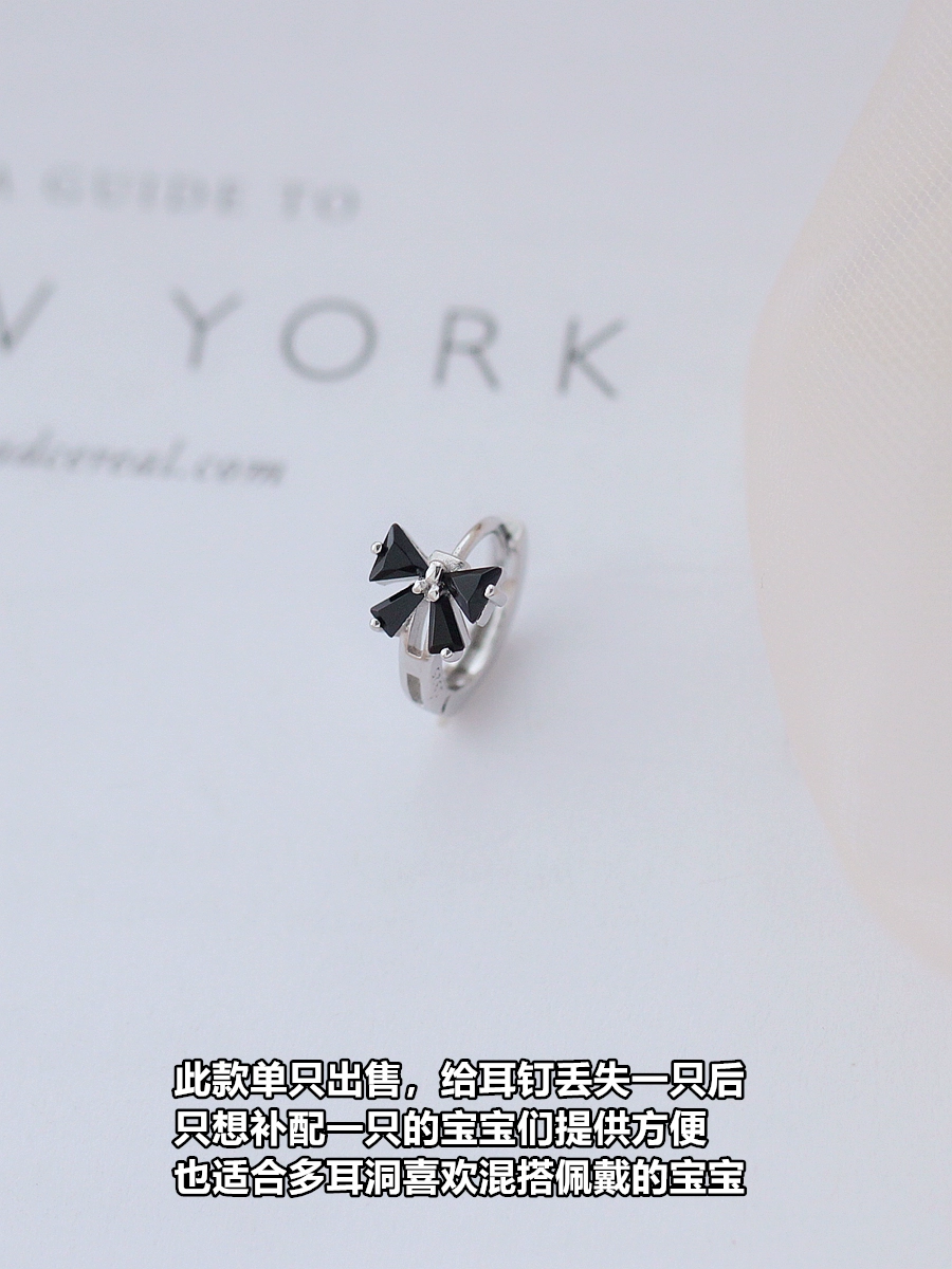 | nameOriginal | Small Z Premium 925 Sterling Silver Hepburn Style Black Bow Earrings Women's Retro Sweet Circle Earrings Earrings |
