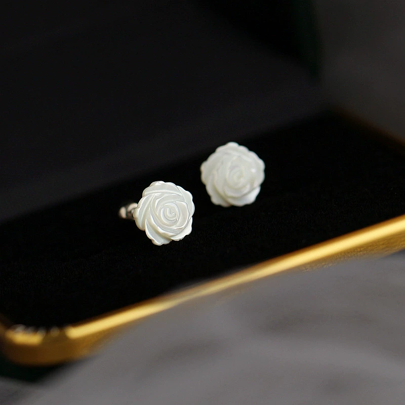 | nameOriginal | Small Z Premium French High-end Camellia Earrings 925 Sterling Silver Natural White Fritillary Rose Screw Twist Earrings |