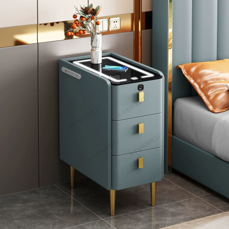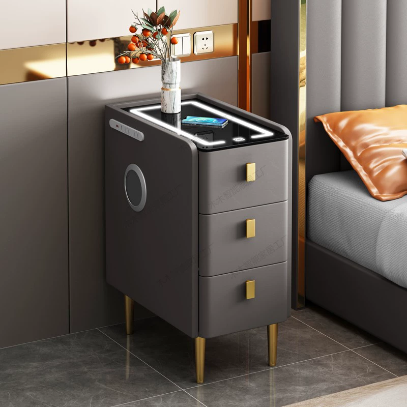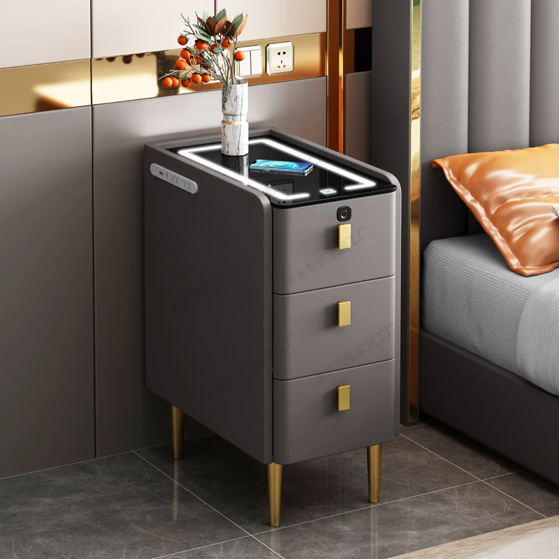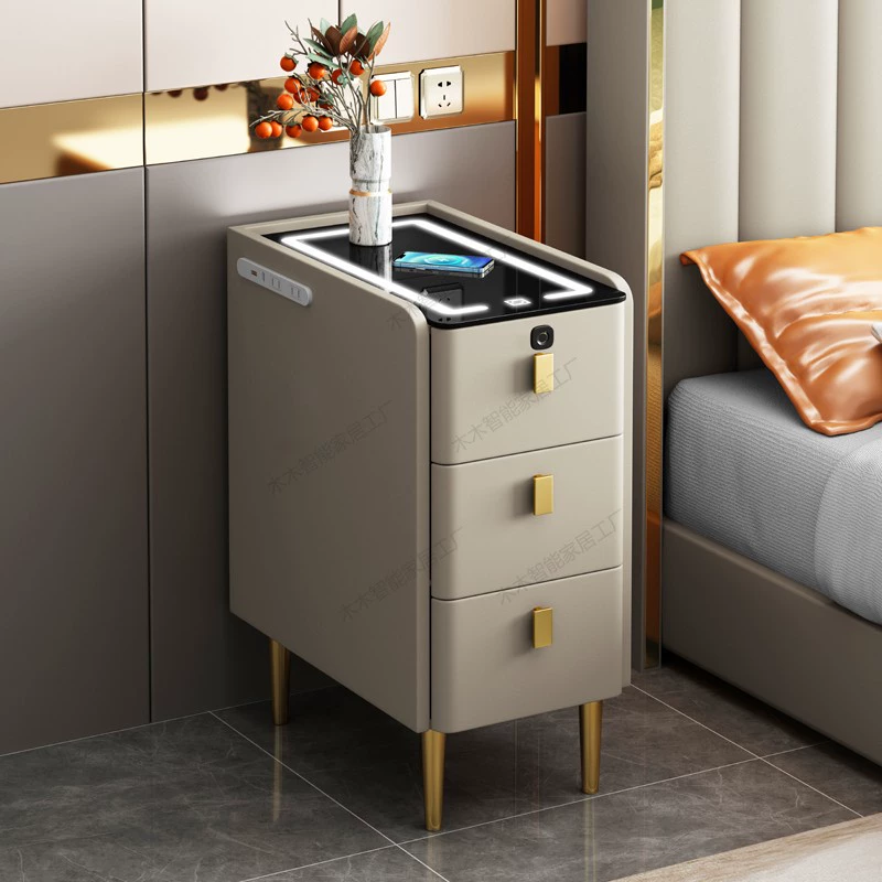 | nameOriginal | Smart bedside table solid wood modern simple multi-function strip with audio fingerprint lock extremely narrow bedside table for small apartments |