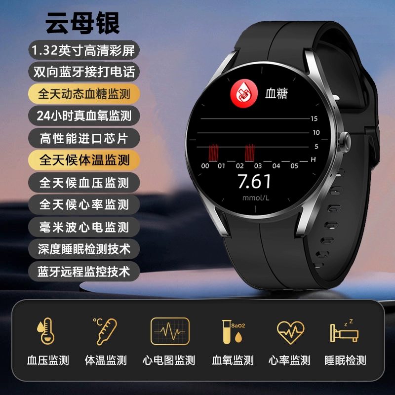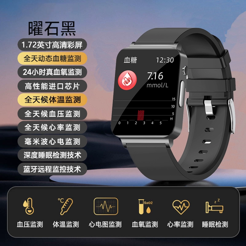 | nameOriginal | Smart bracelet watch health non-invasive blood glucose test monitor heart rate blood pressure blood lipids uric acid needle-free painless high-precision home sleep men and women elderly multi-functional sports running |