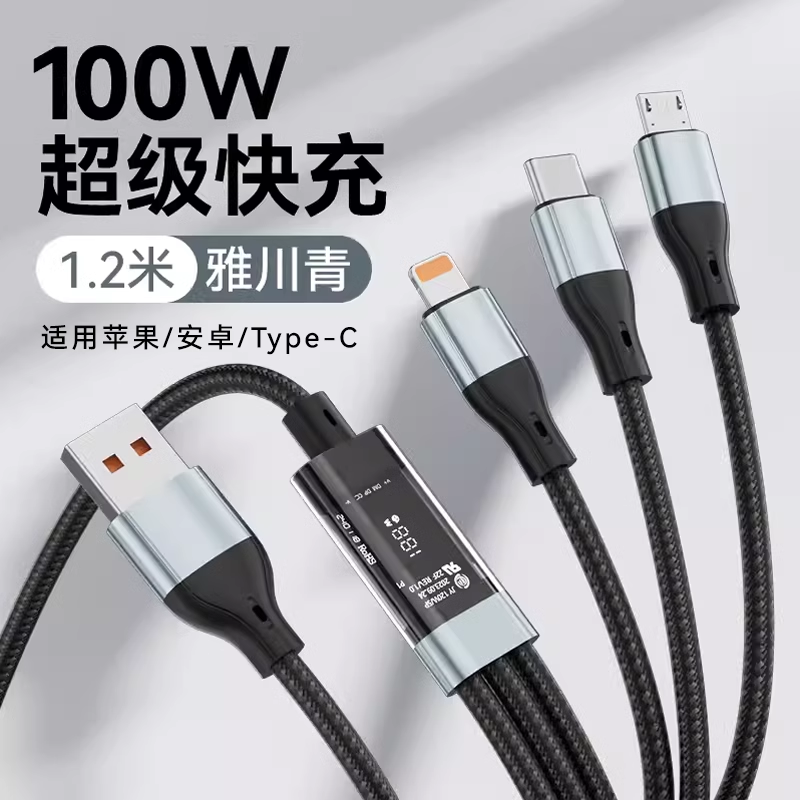 Smart digital display/PD30w fast charging data cable suitable for Apple 14 super flash charge 13pro multi-function dual typec three-in-one iPhone 15 Huawei USB Honor two-to-two 8p charger