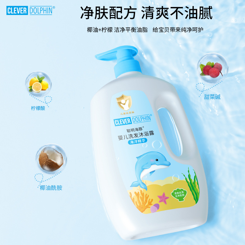 Smart dolphin 1L baby shampoo and shower gel baby toiletries children Shower Gel Shampoo two-in-one