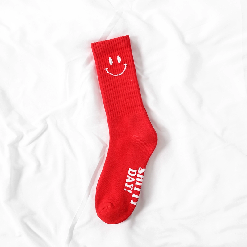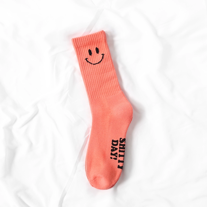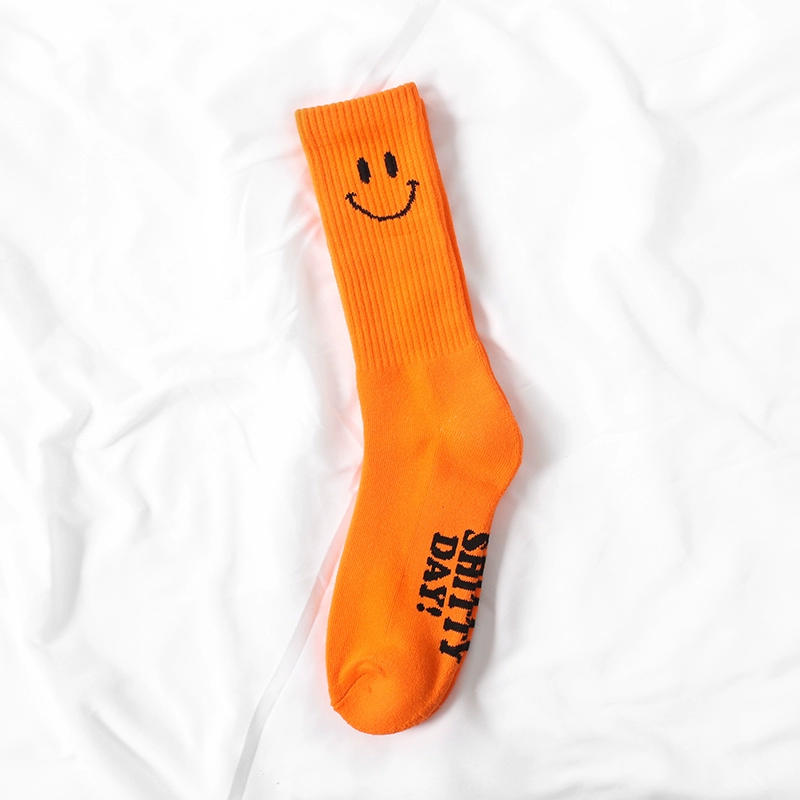 Smiley face men’s and women’s pure cotton towel-soled street socks