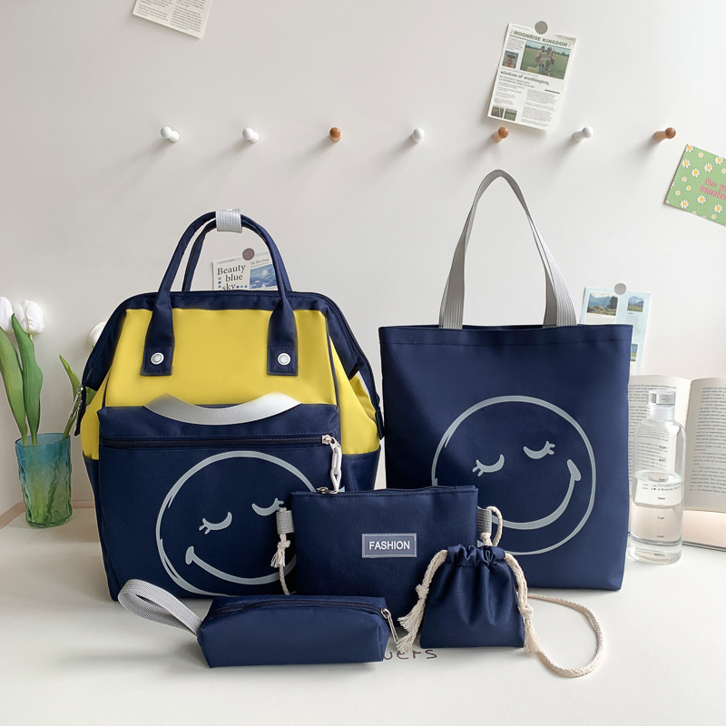 | nameOriginal | Smiling face mummy bag five-piece shoulder portable mother and baby bag large capacity mother bag factory wholesale mummy outbound bag |