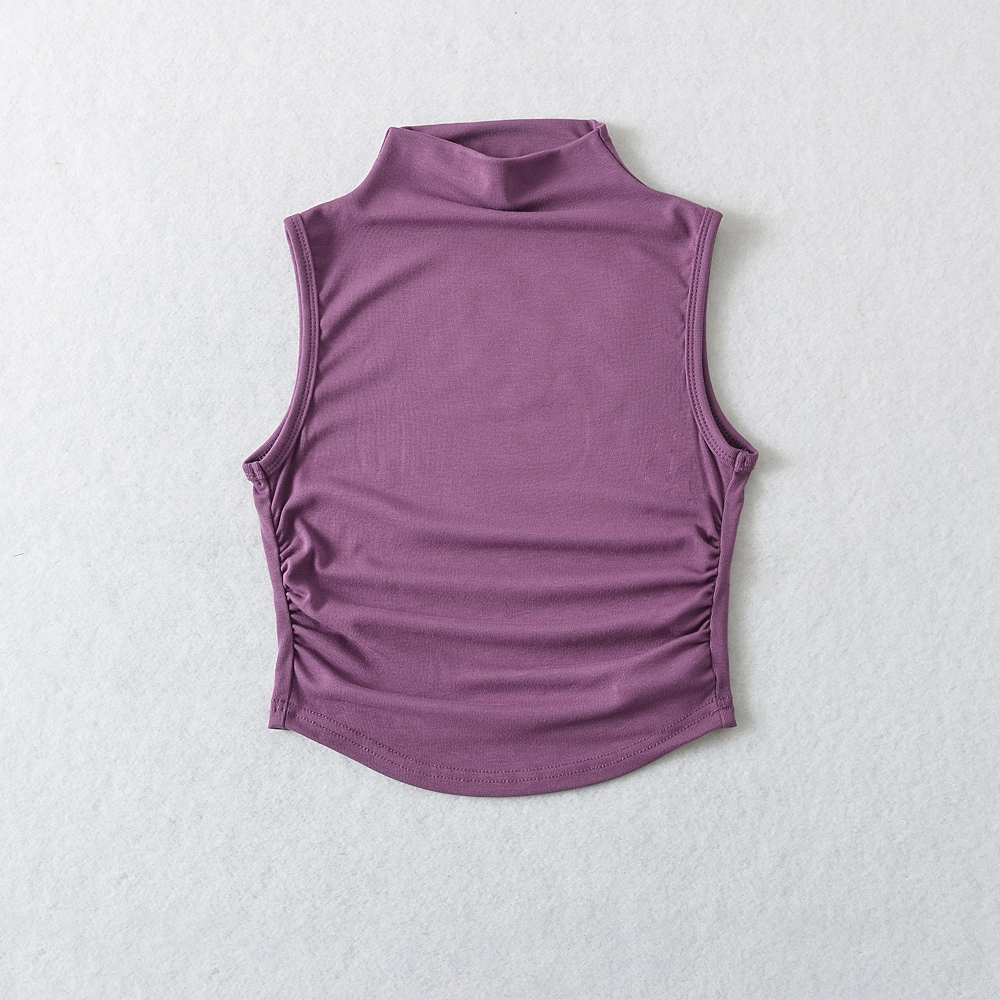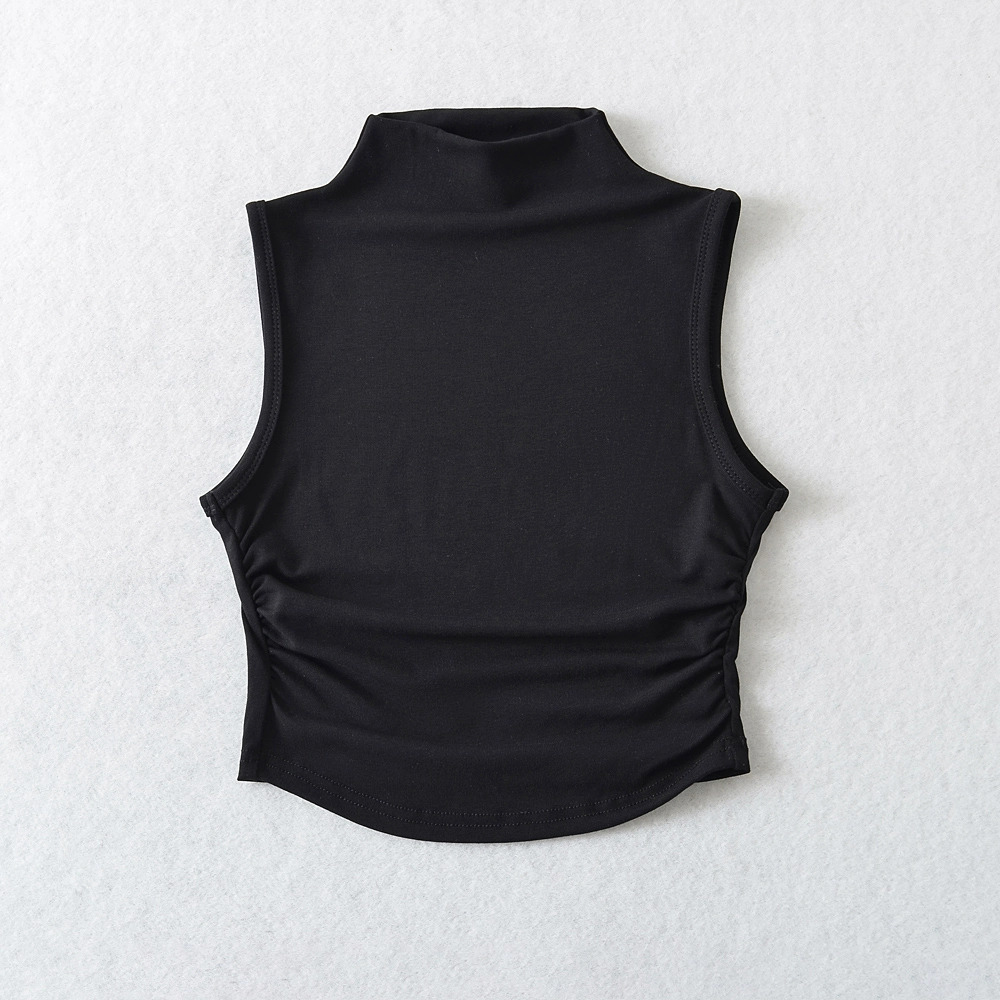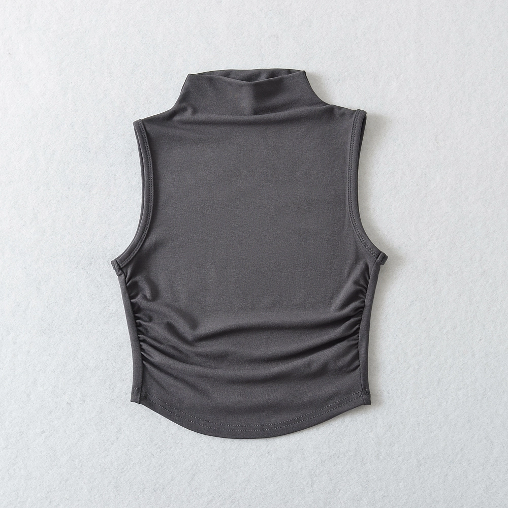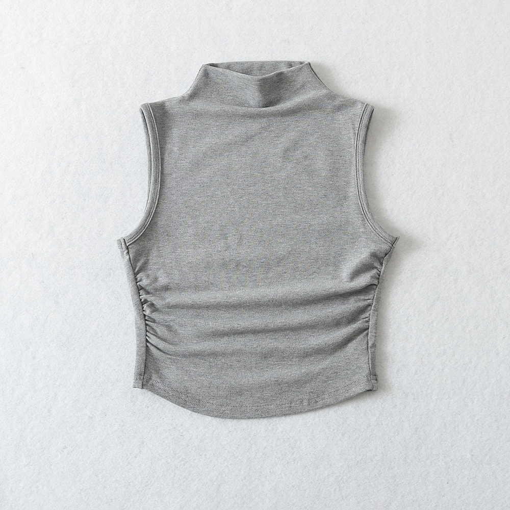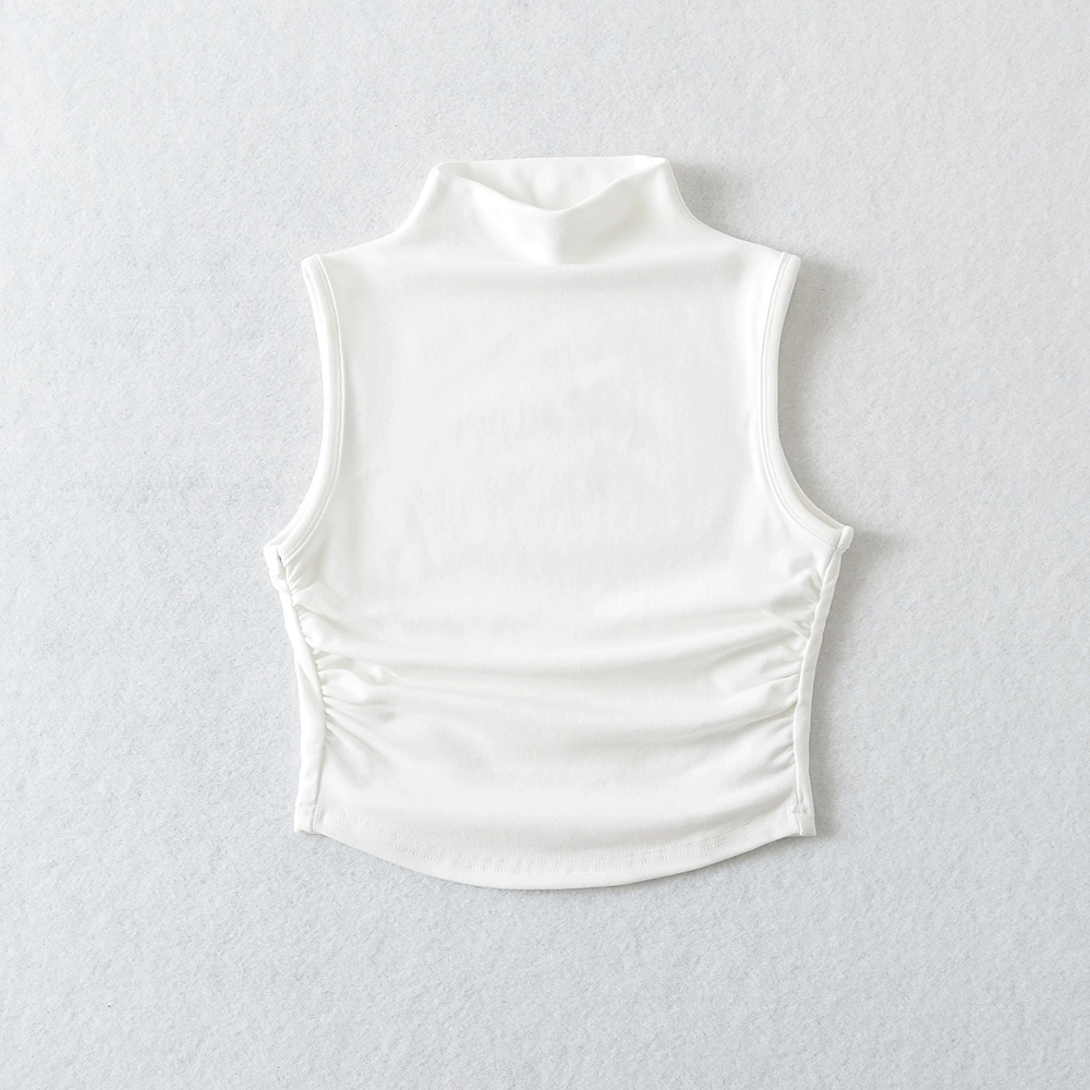 | nameOriginal | Smocked small stand-up collar slim and versatile waist-cinching top and vest |