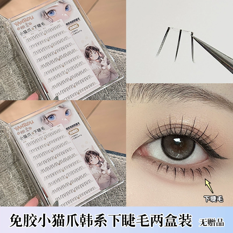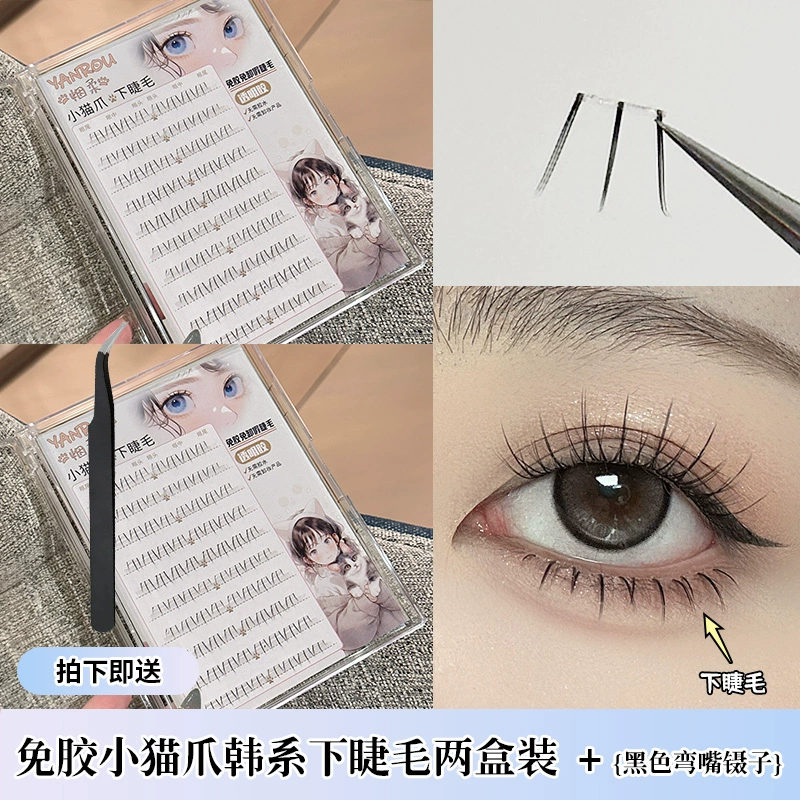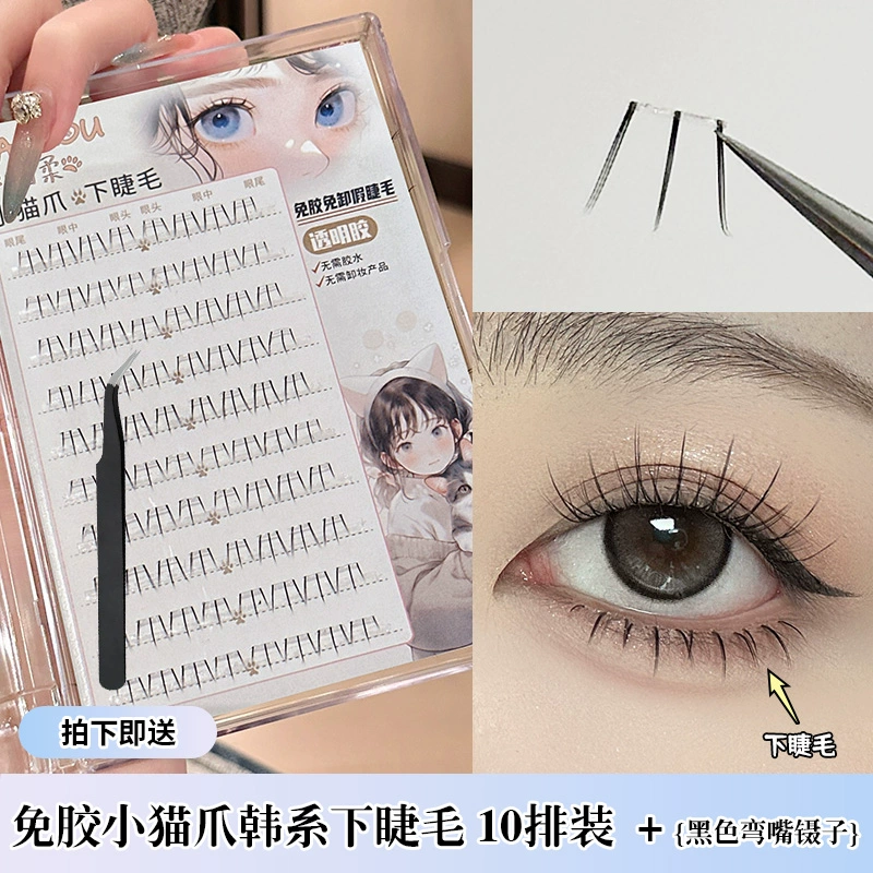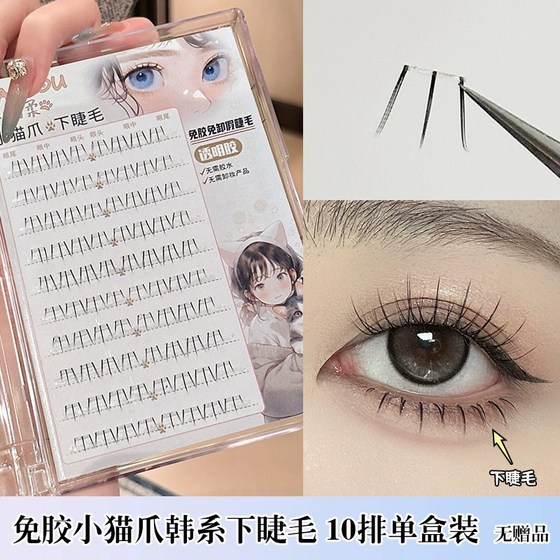 Smoke-free glue-free transparent glue Korean kitten paw lower eyelashes false eyelashes natural simulation lazy novice Japanese style