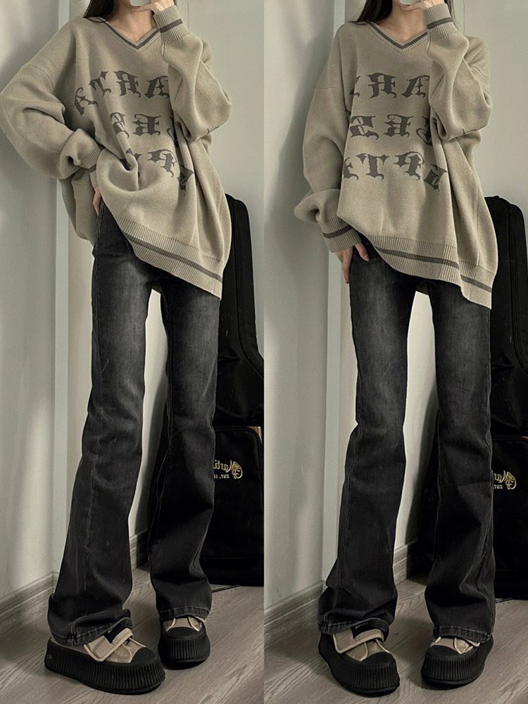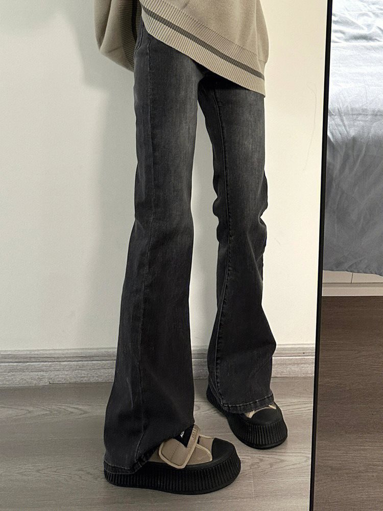 Smoke Gray Horn Jeans Women’s Early Spring plus size chubby girl High Waist Slim-fit Straight Slim-fit Micro Horseshoe Pants