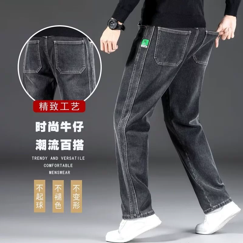 Smoke Gray Wear-Resistant Spring Youth Plus Size Jeans