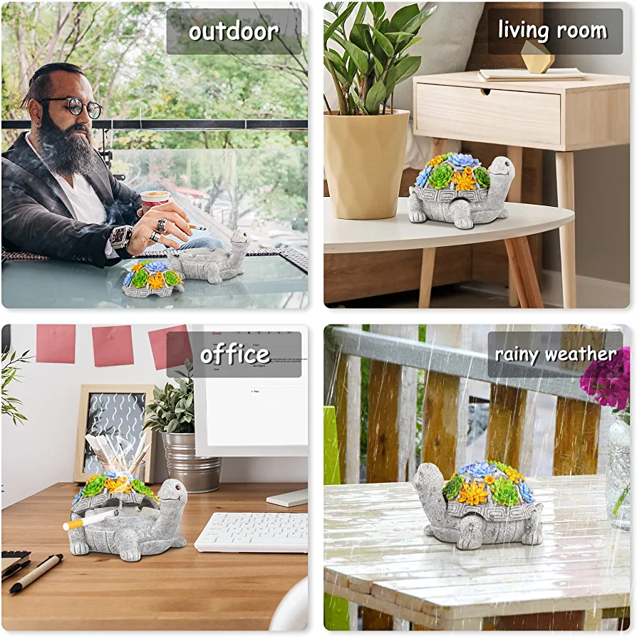 | nameOriginal | LESES Ashtray, Outdoor Ashtray with Lid Smokeless Waterproof Ash Tray with Cute Turtle Decor, Resin Ashtray for Cigarettes Home Office, Porch Patio Decorations Outdoor Indoor Ashtray |