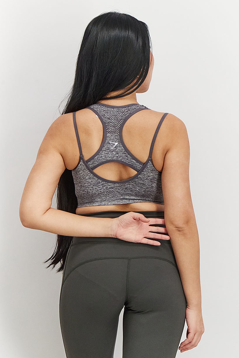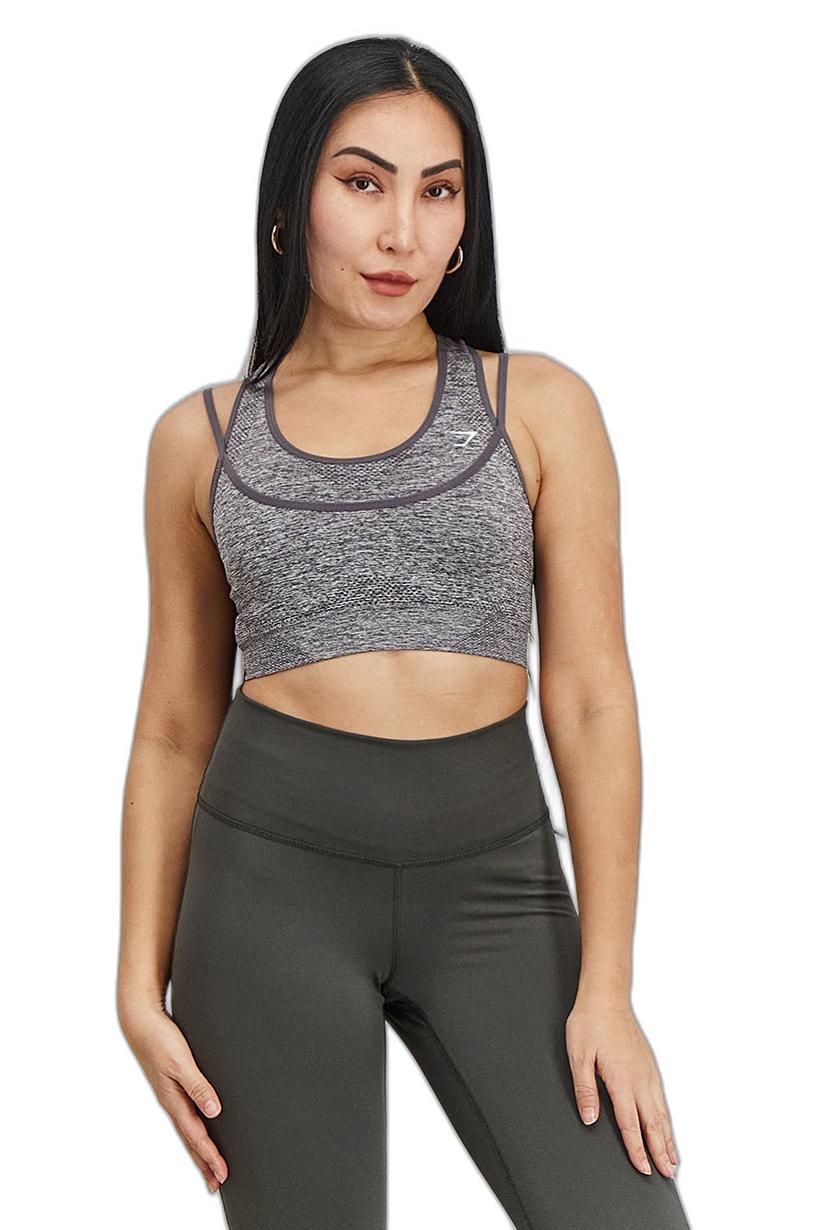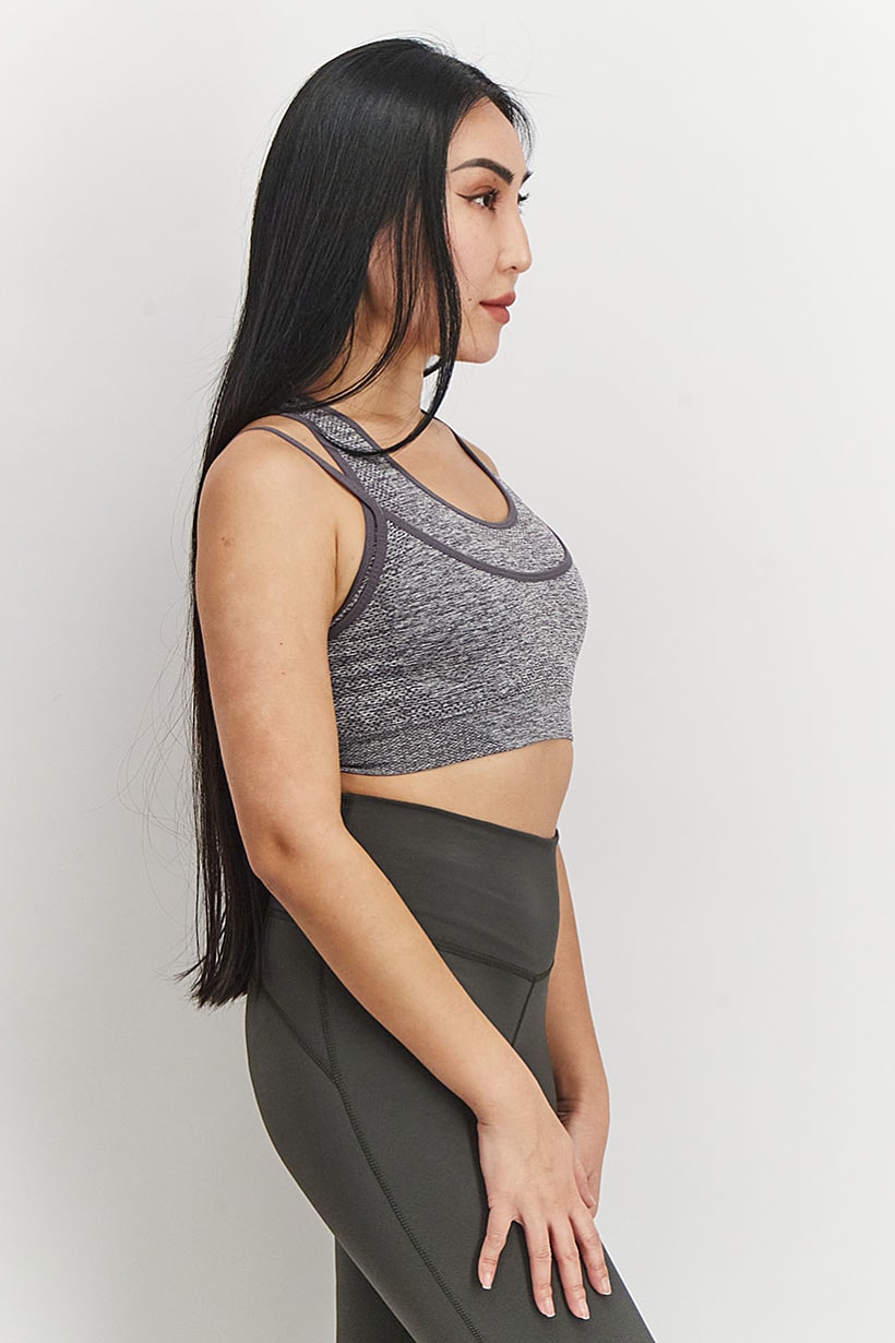 Smokey Grey Padded Sports Bra for Women with Vital Rise and Textured Design.