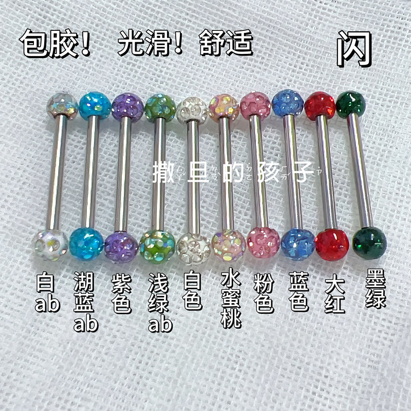 Smooth and comfortable non-grinding tongue nail flash drill internal thread titanium steel small beads tongue nail tongue ring puncture tongue nail new product