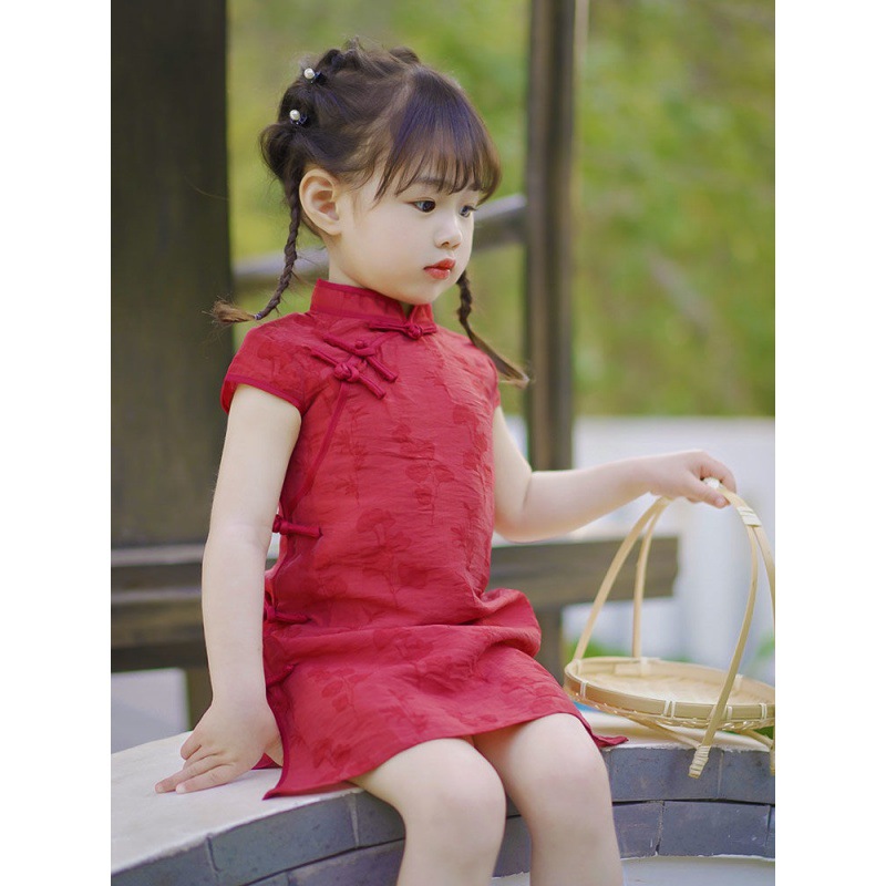 SN girls cheongsam summer thin little girl baby costume children’s Chinese style improved red banquet dress