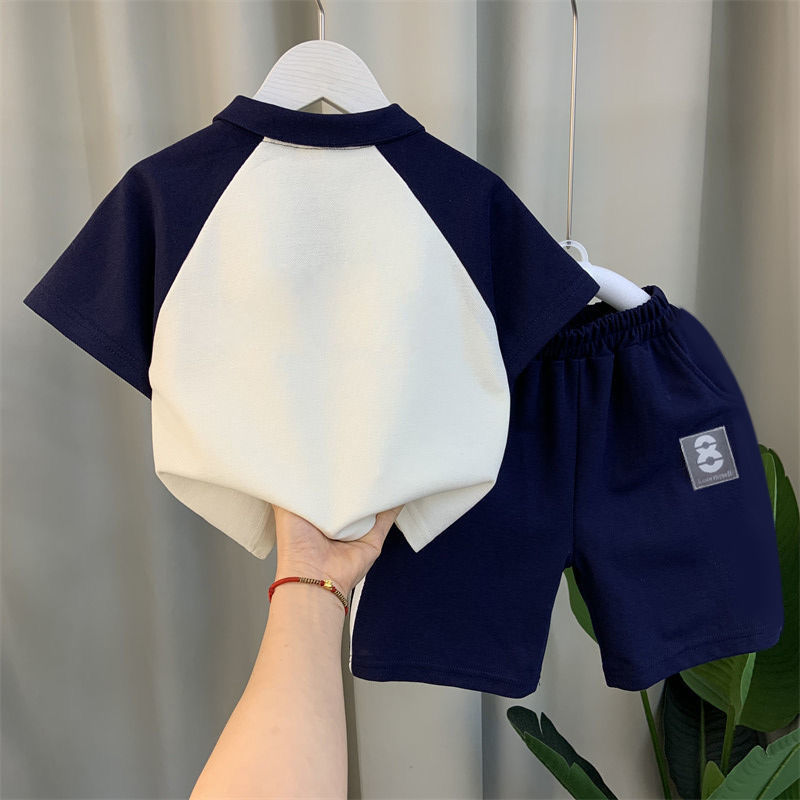 | nameOriginal | SN summer lapel suit children's sports leisure short sleeve POLO shirt boys western style academic style T-shirt two pieces |