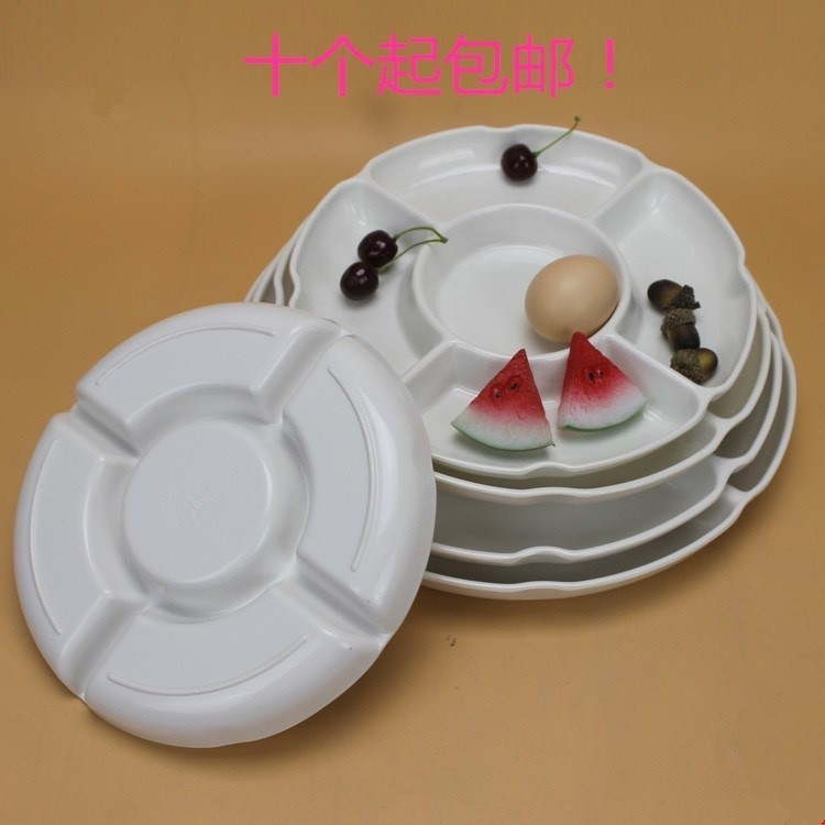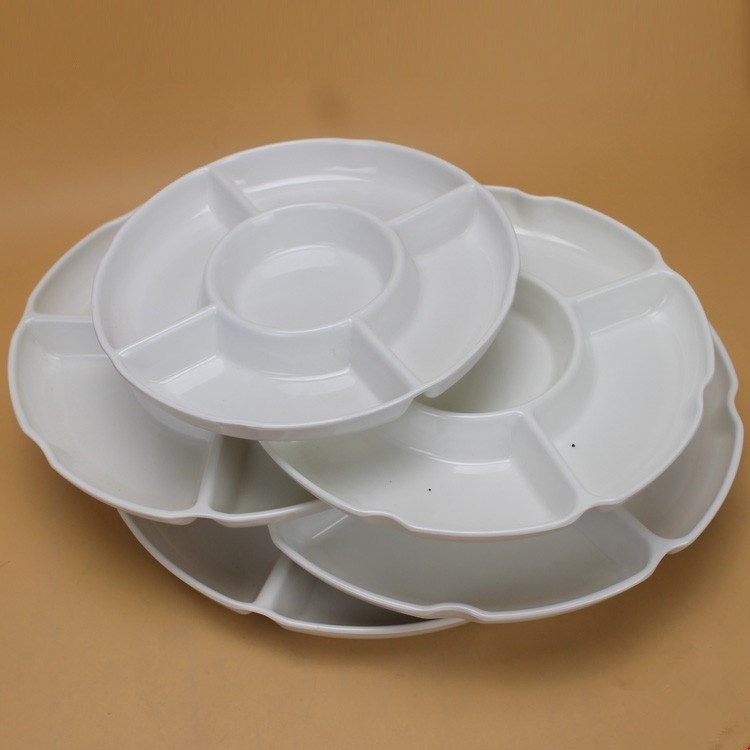 | nameOriginal | Snack Imitation Porcelain Dinner Plate Multi-grid Plate Milamine Fish Ingredients Plate White Platter Round Dish Plastic Plate |