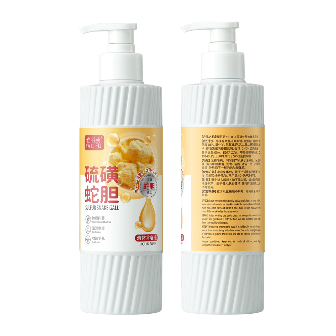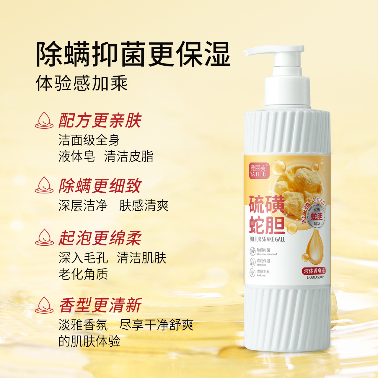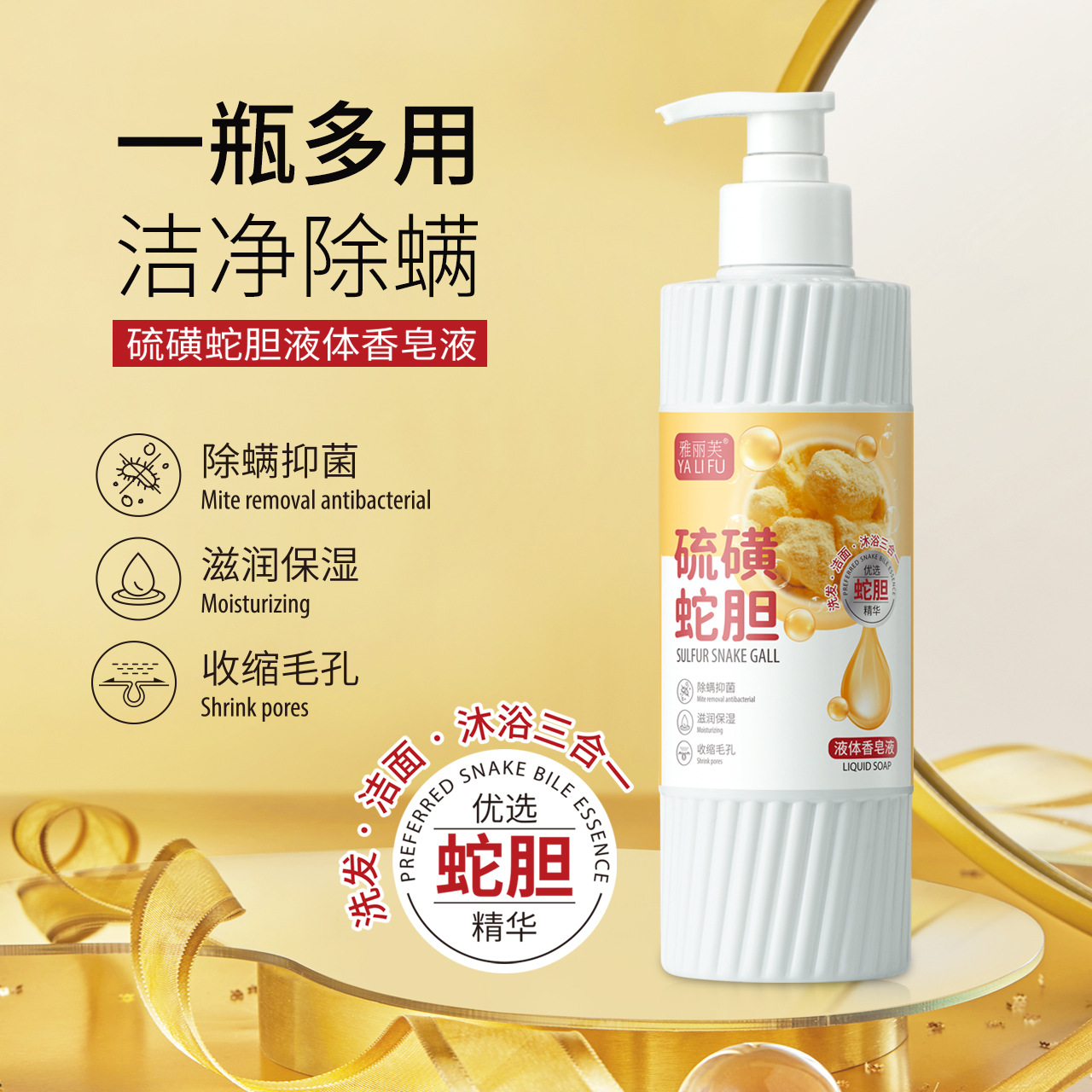 | nameOriginal | Snake gall medicine soap natural sulfur liquid soap antibacterial cleaning anti-acne shower gel skin cleansing oil body fragrance mite relieving itching |