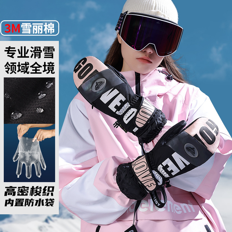 Snowboard Gloves stuffy Palm protection wrist protection professional Waterproof warm special protective gear finger five finger mountaineering men and women