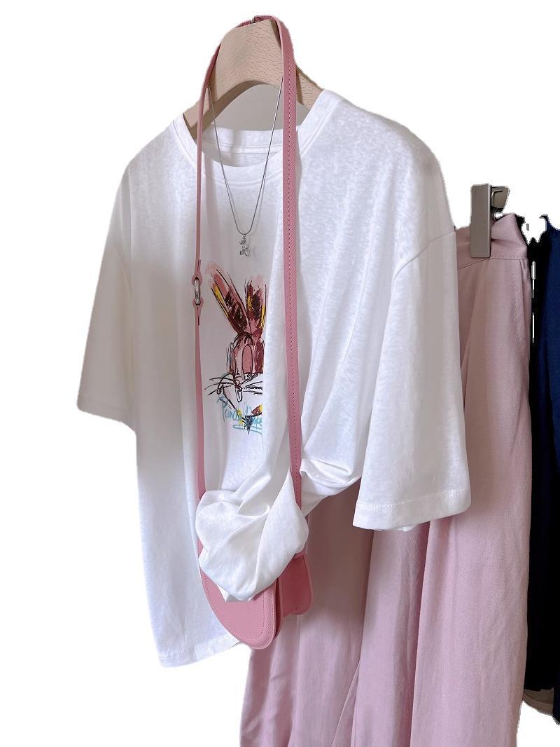 | nameOriginal | Snowflake Cotton Short-sleeved T-shirt Women's Cool Korean-style Powder Rabbit Printed Loose Round Neck All-match Half-sleeved Slim-fit Top |