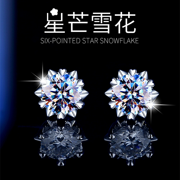 | nameOriginal | Snowflake Genuine Moissanite Sterling Silver Bull Head Super Flash Earrings |