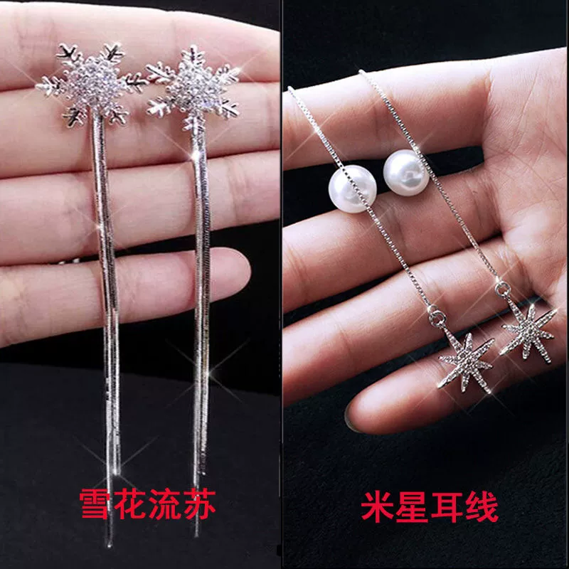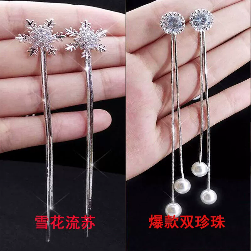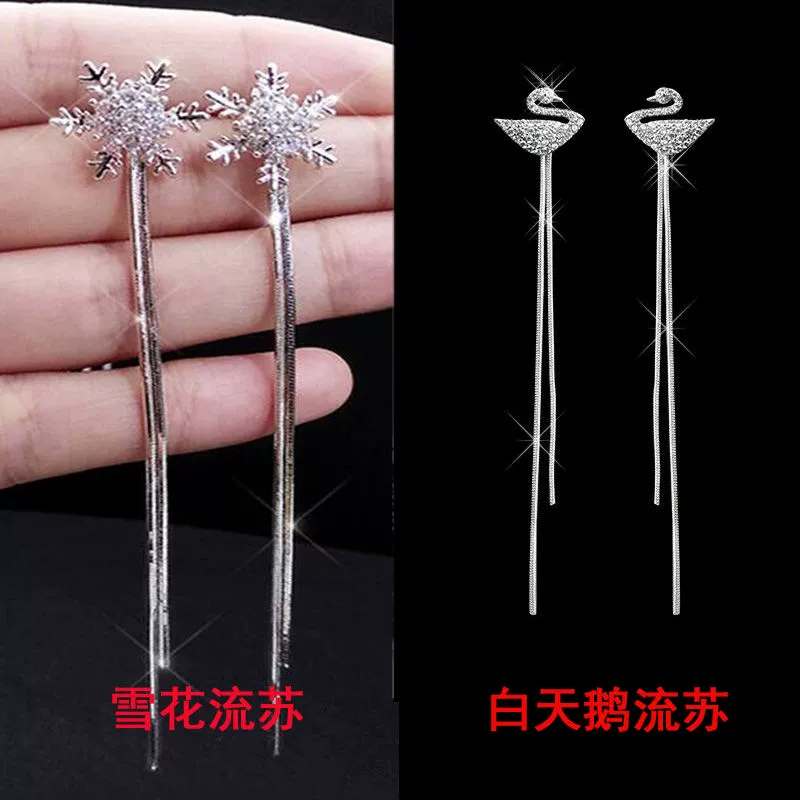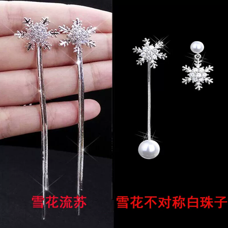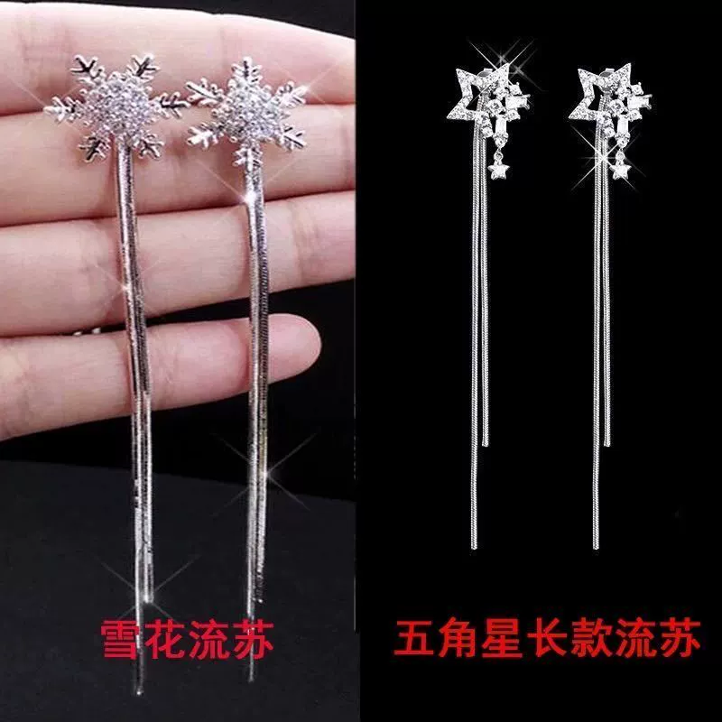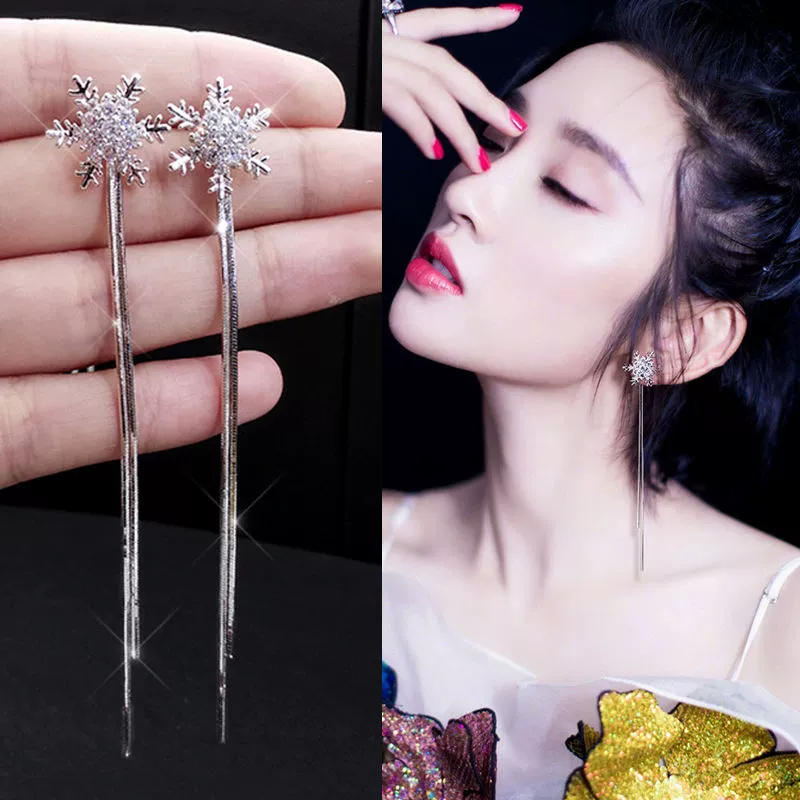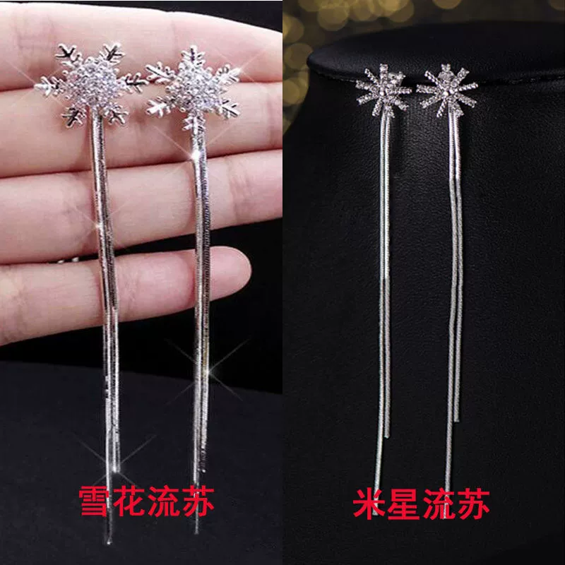 | nameOriginal | Snowflake sterling silver women's long Korean style personalized tassel earrings |
