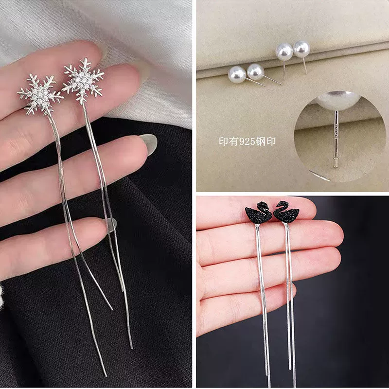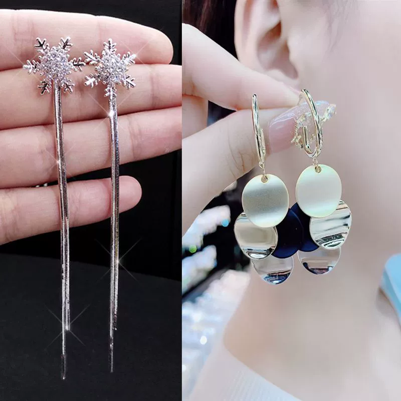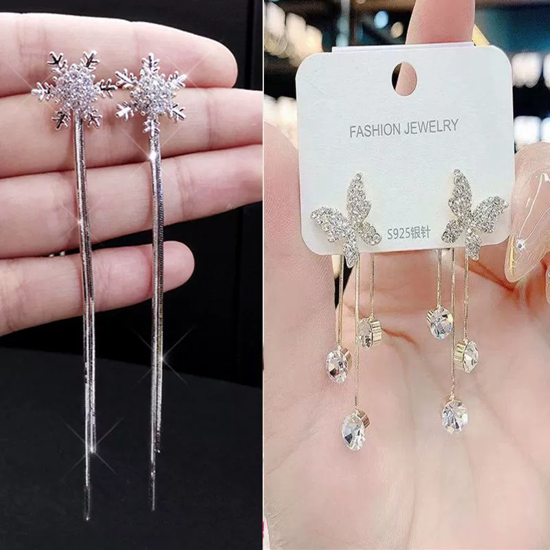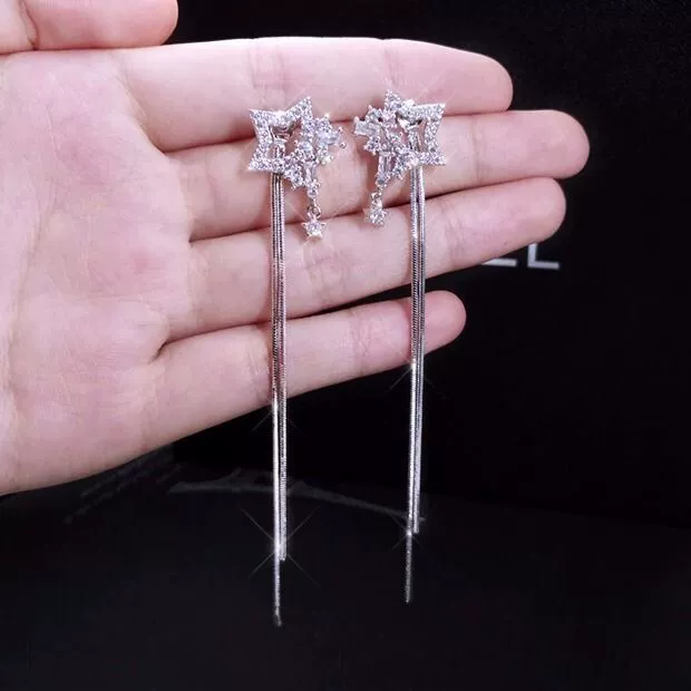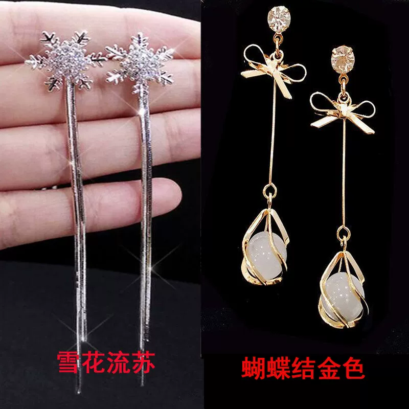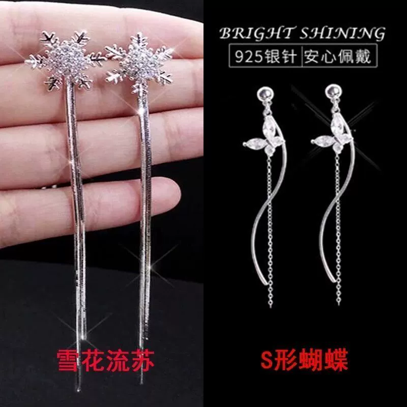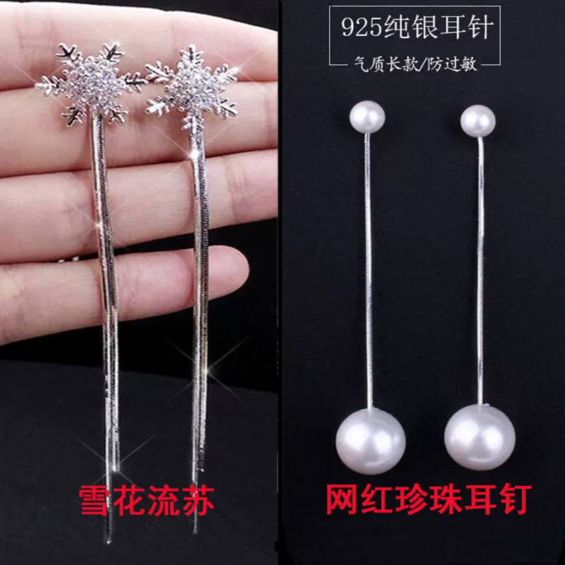 | nameOriginal | Snowflake sterling silver women's long Korean style personalized tassel earrings |