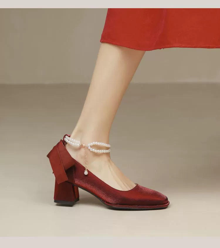 | nameOriginal | So fairy~ White Mary Jane shoes with pearl ribbon 2023 new style thick heel French high heels wedding shoes for women |