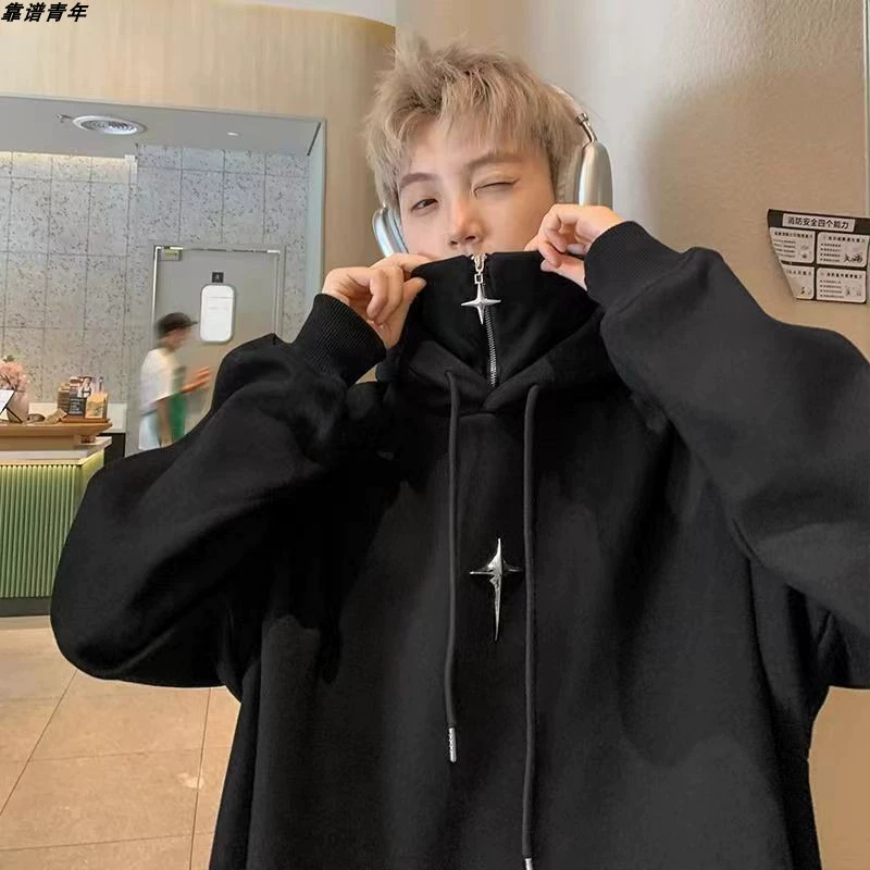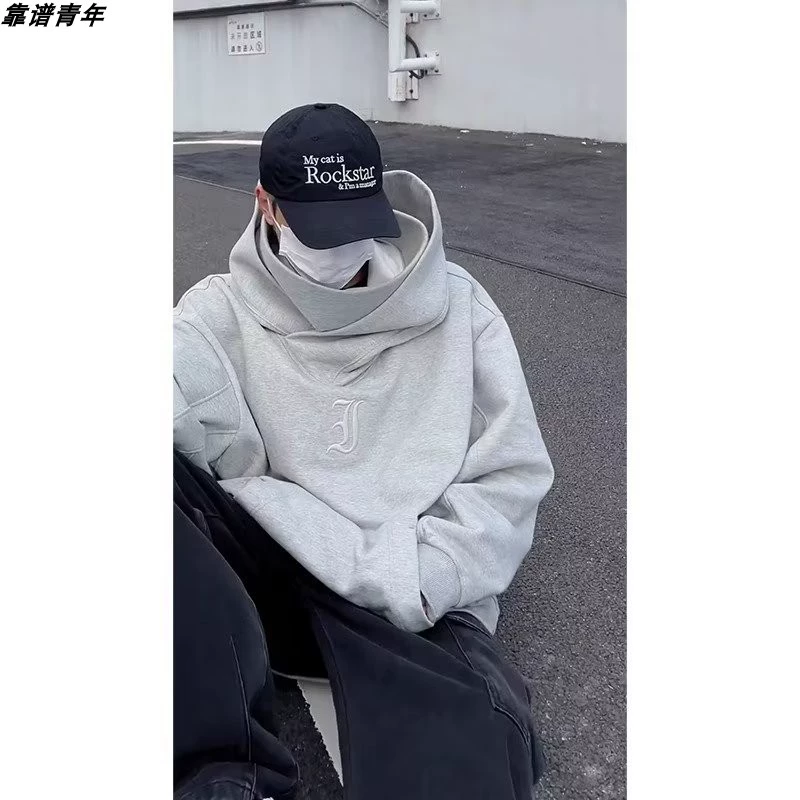 Social Fear I People Embroidered Sweatshirt Men's Trendy Brand American Functional Hooded Oversize Couple's Wasteland Style Top