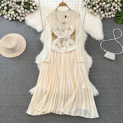| nameOriginal | Socialite long-sleeved lace patchwork dress fake two-piece |