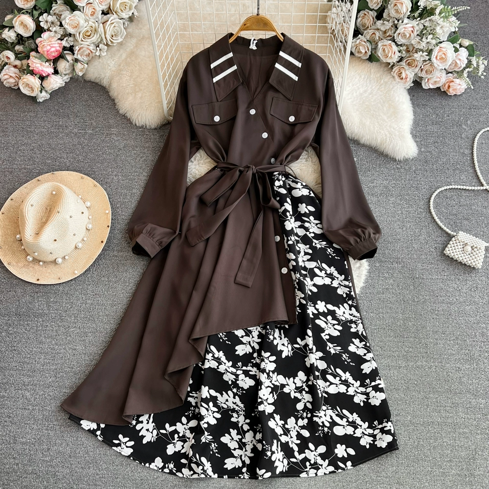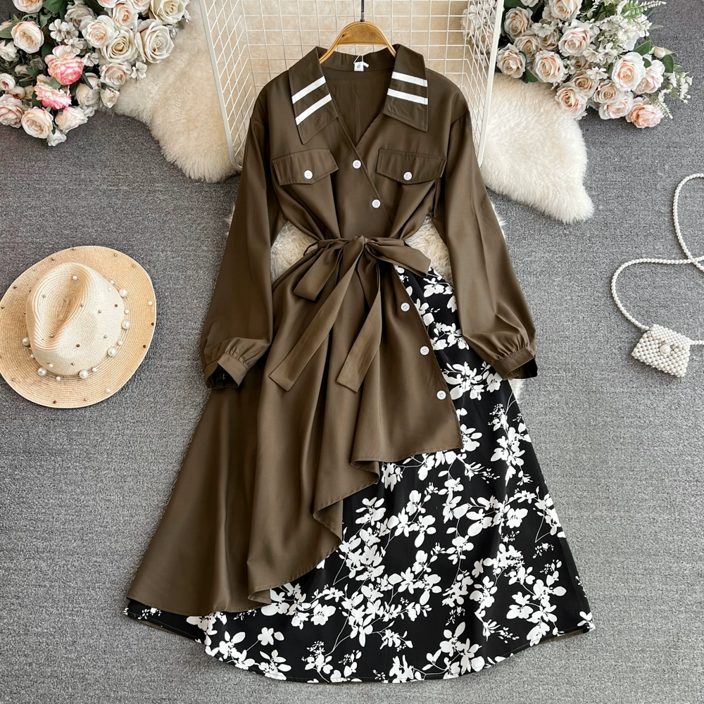 | nameOriginal | Socialite long-sleeved V-neck patchwork A-line dress with wide hem |