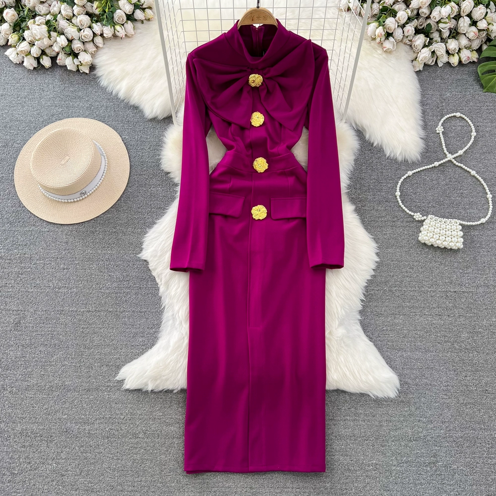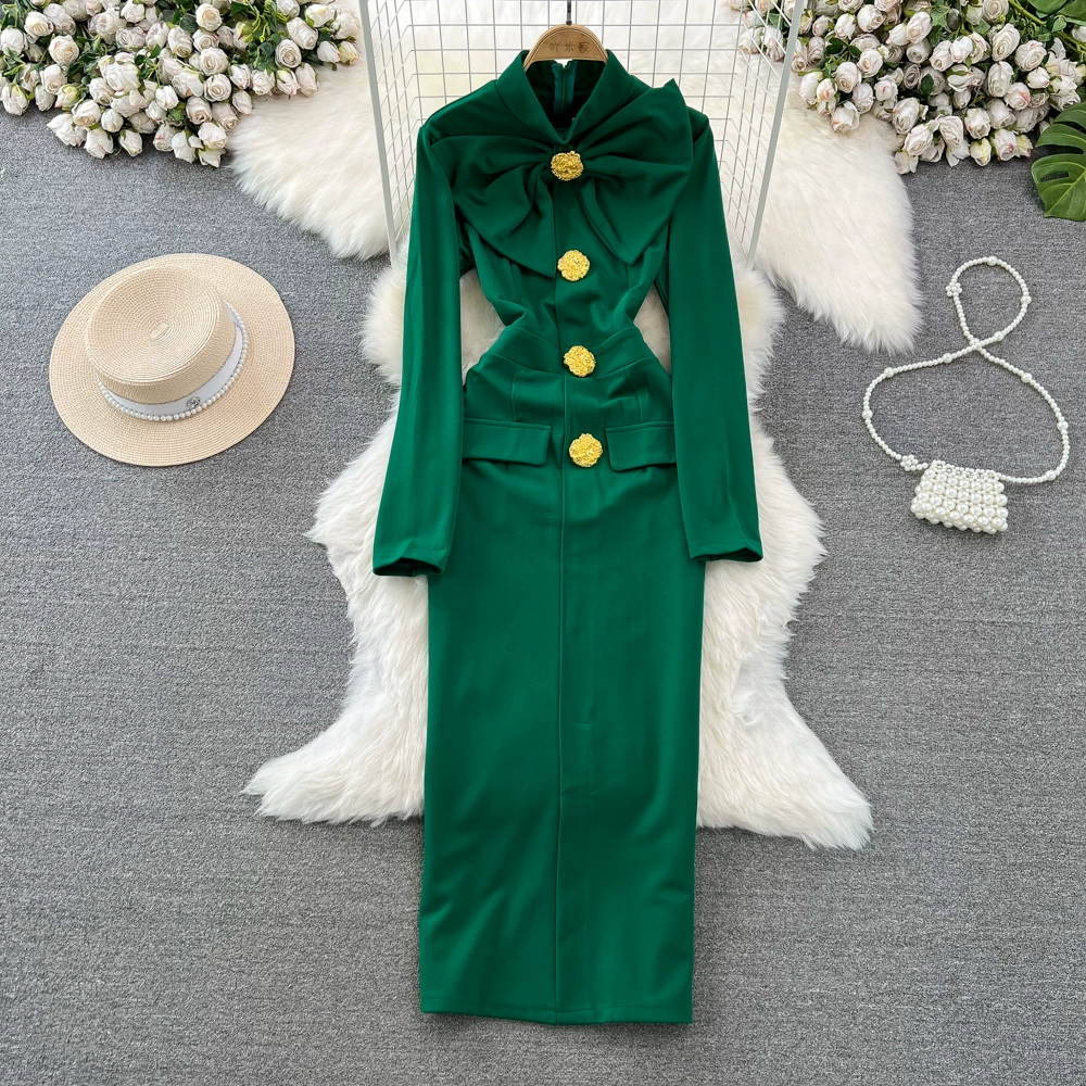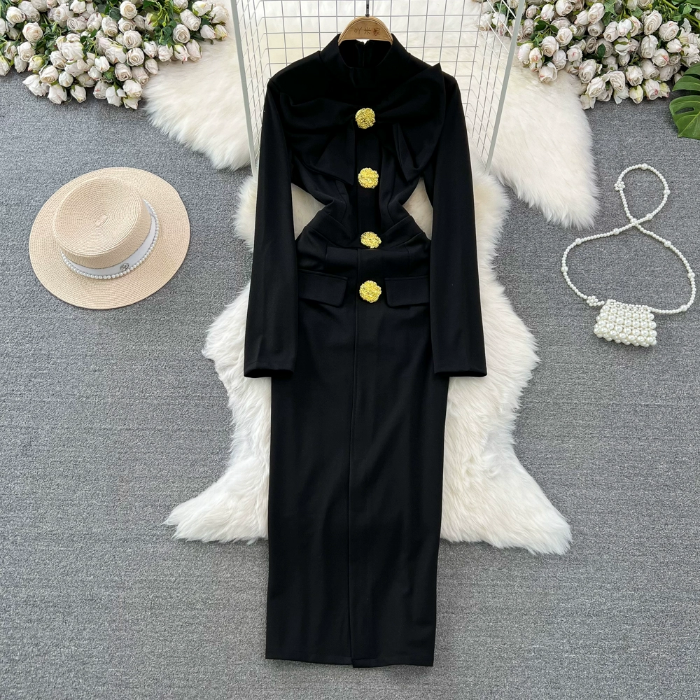 | nameOriginal | Socialite professional long-sleeved dress with bow tie |