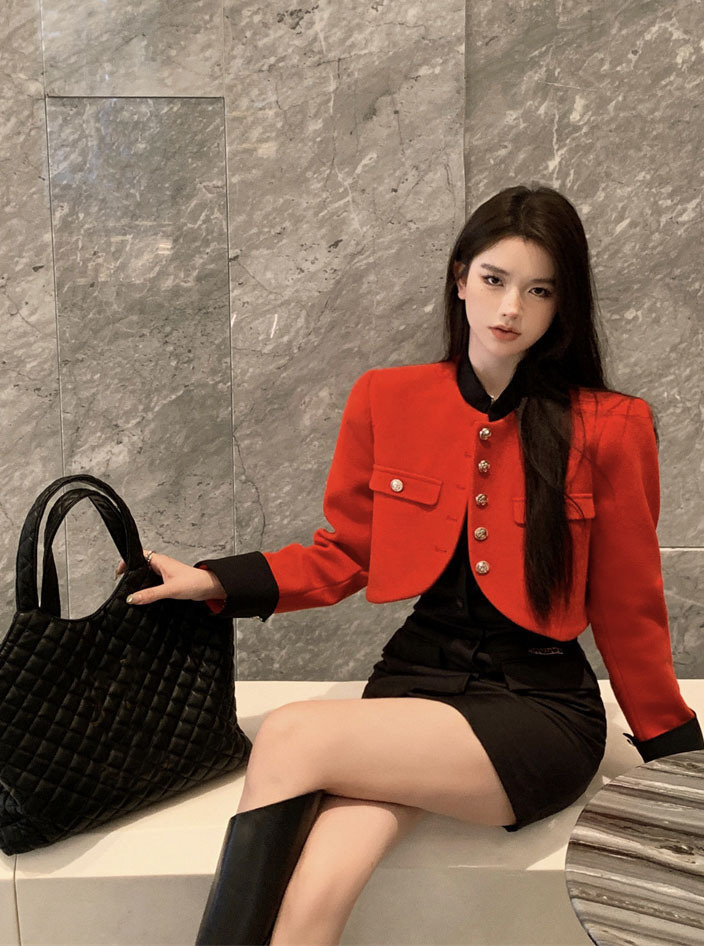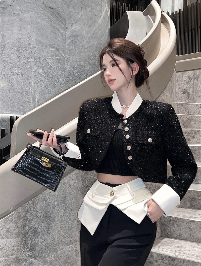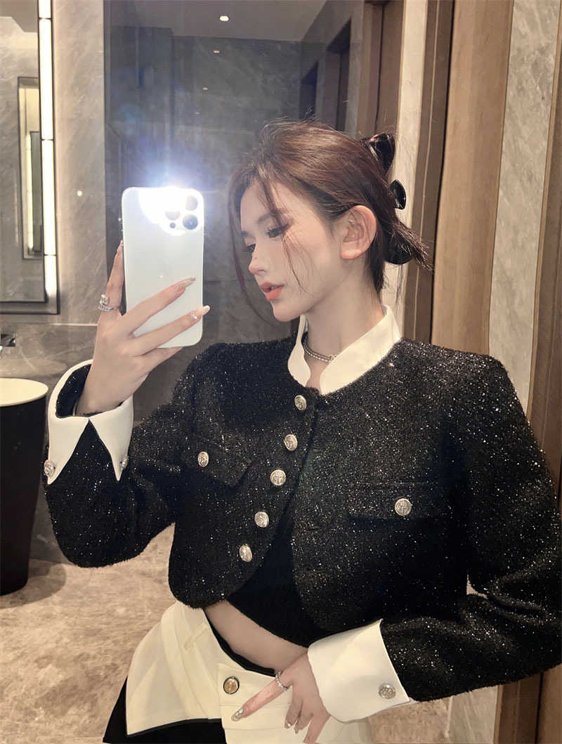 | nameOriginal | Socialite temperament Xiaoxiang British retro stitching contrast color woolen short coat |