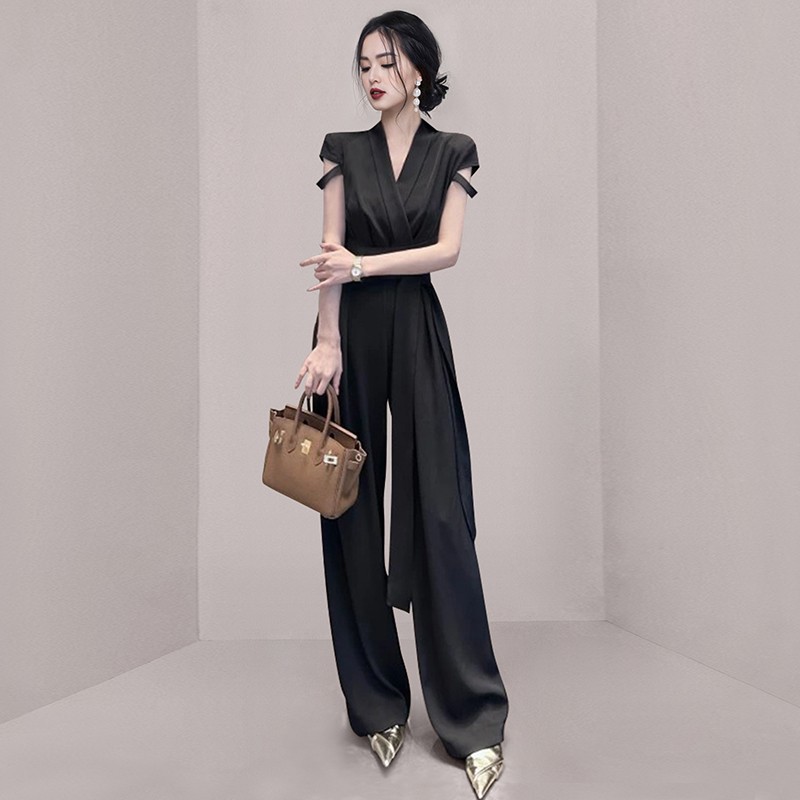 | nameOriginal | Socialite V-neck tight waist and capable elegant wide-leg pants cross-border women's clothing summer new elegant slimming wide-leg jumpsuit |