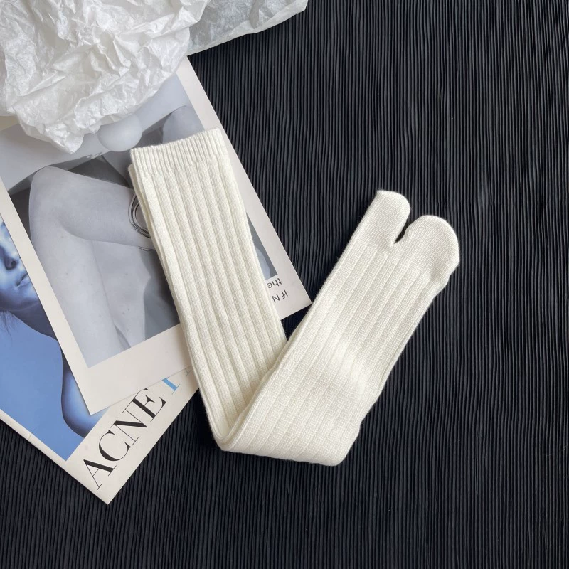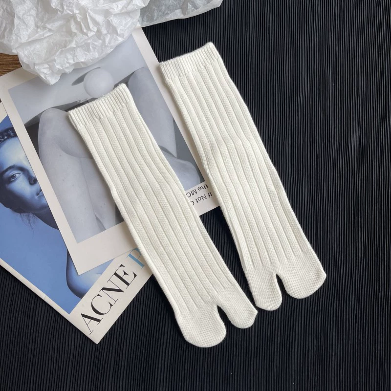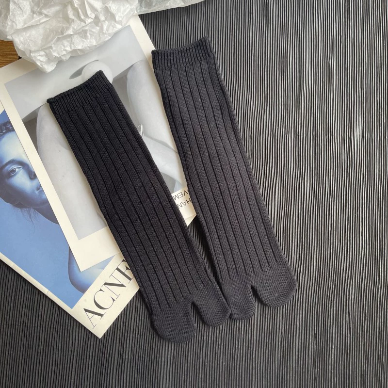 | nameOriginal | Sock shop autumn and winter cotton line wide vertical strip solid color split toe socks two-finger socks Japanese pile socks retro high stockings |
