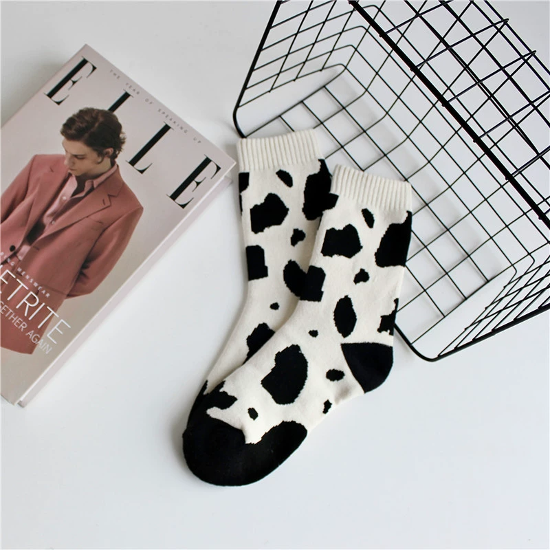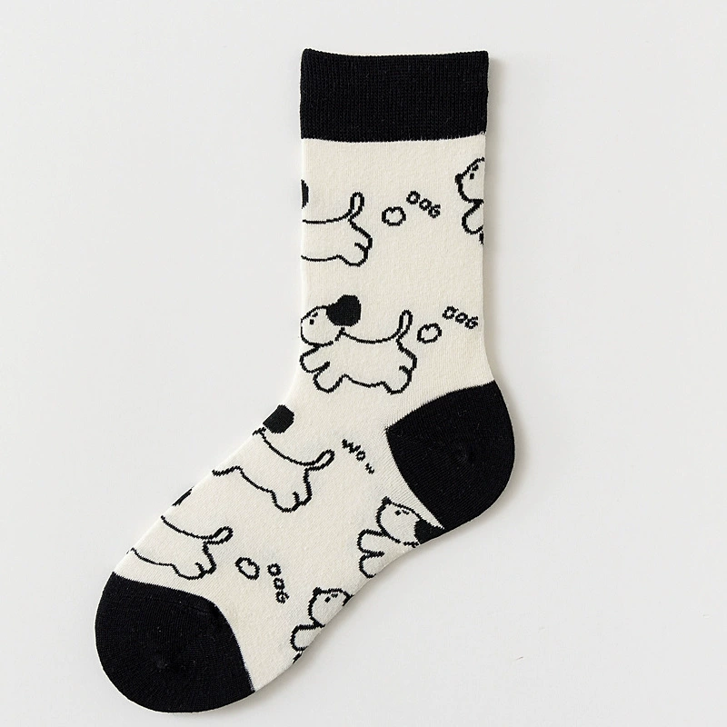 Socks for women in autumn and winter, cute white stockings, Japanese black and white cartoon socks, ins women's socks, trendy socks, mid-calf men's socks