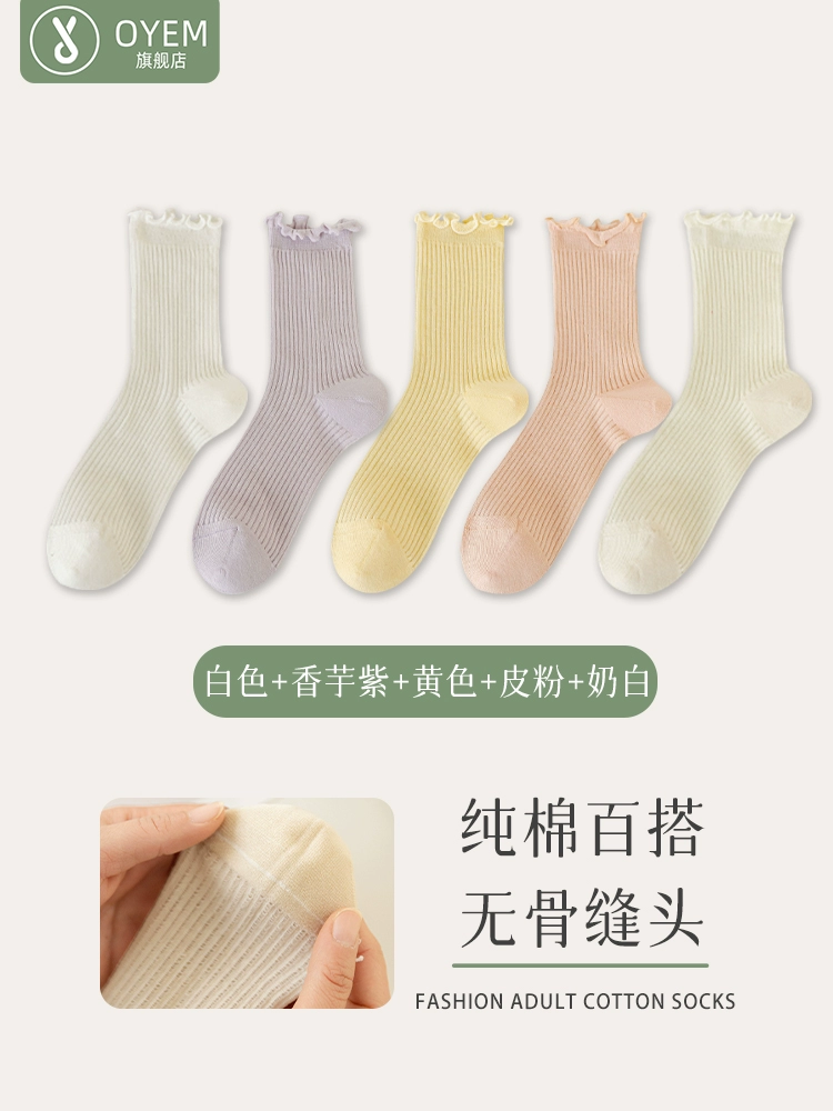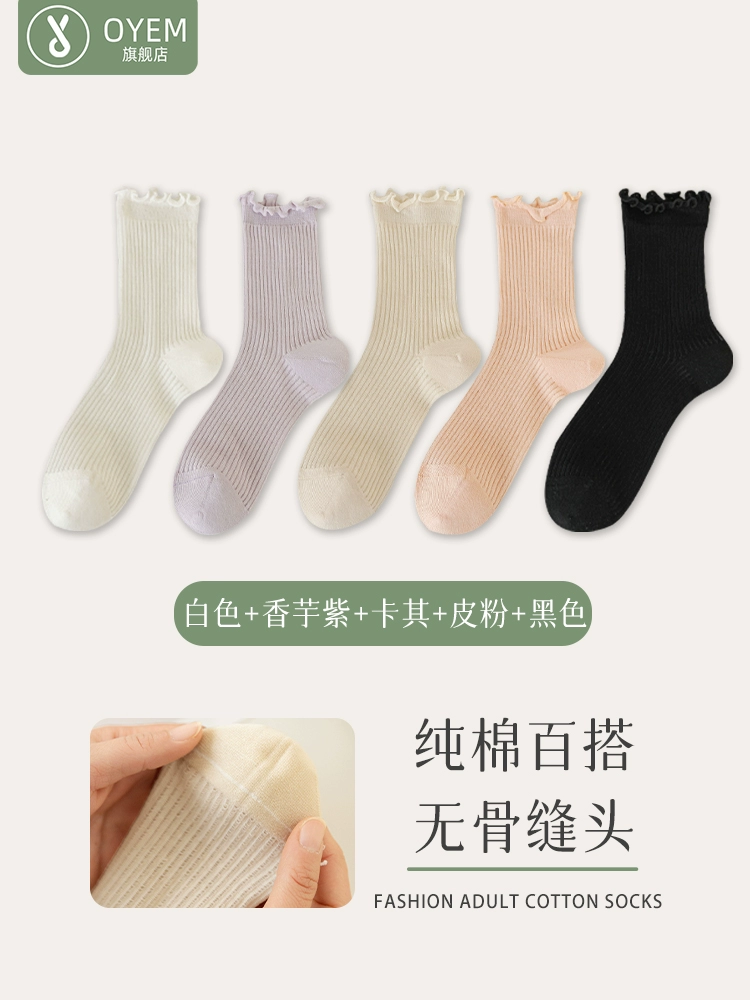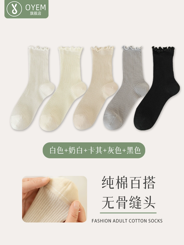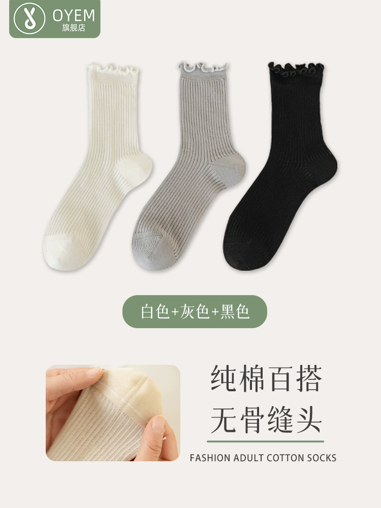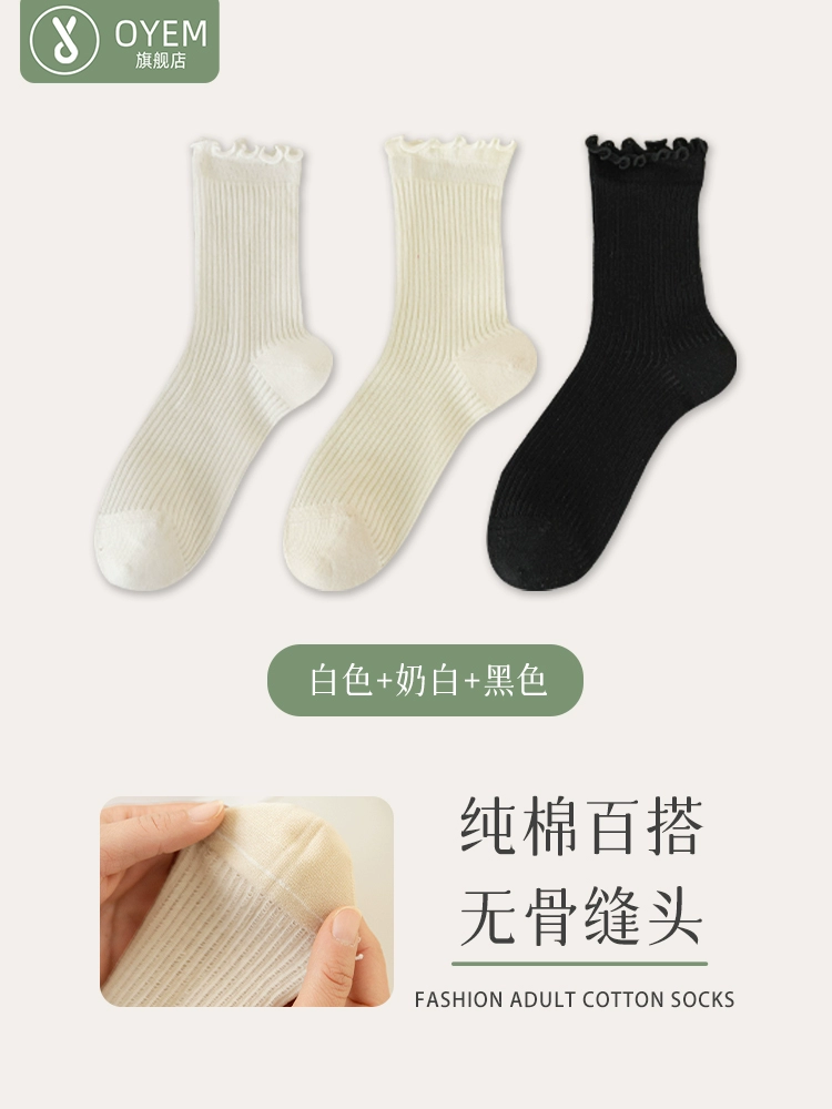 | nameOriginal | Socks for women in spring and summer thin lace pure cotton mid-tube boneless pile stockings loose mouth confinement sweet ballet style white socks |