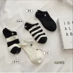 | nameOriginal | Socks for women spring and summer embroidered black and white striped breathable boat socks |