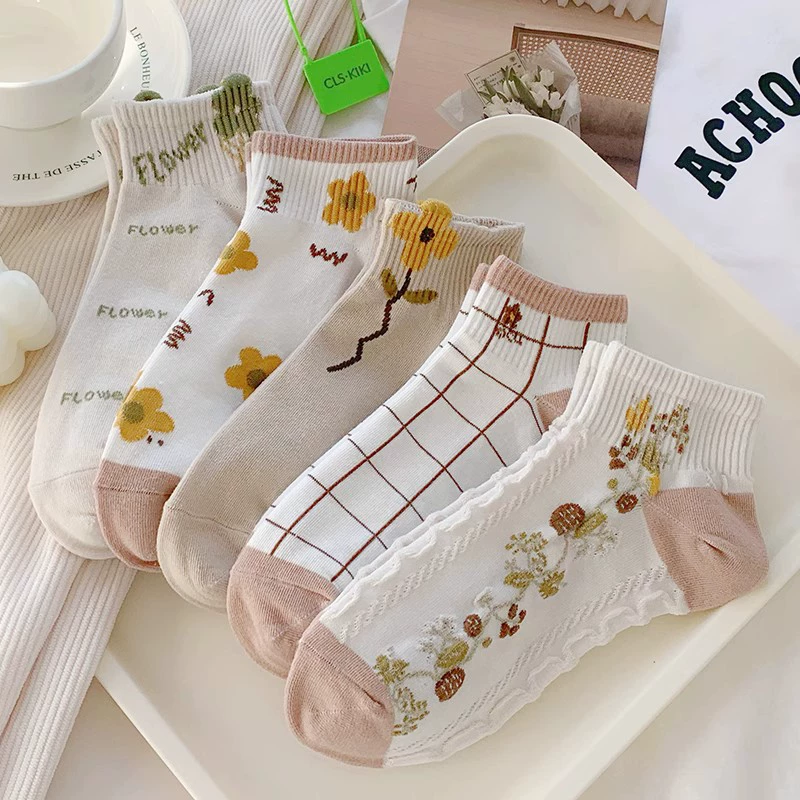 Socks for women spring and summer ins trendy palace floral socks