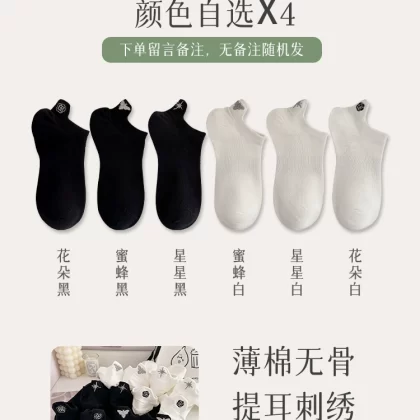 | nameOriginal | Socks for women summer boneless non-falling black and white socks |