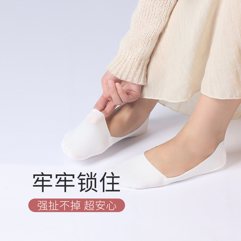 Socks ice silk boat socks women's shallow invisible socks thin sweat-absorbent silicone non-slip do not fall off women's socks towel bottom wholesale