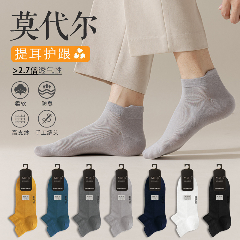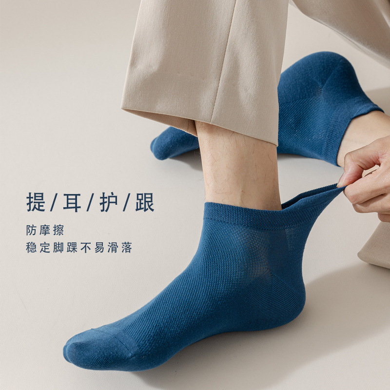 | nameOriginal | Socks Men's Summer Thin Antibacterial Deodorant Modal Sweat Absorbing Breathable Hand-stitched Solid Color Mesh Short Boat Socks |