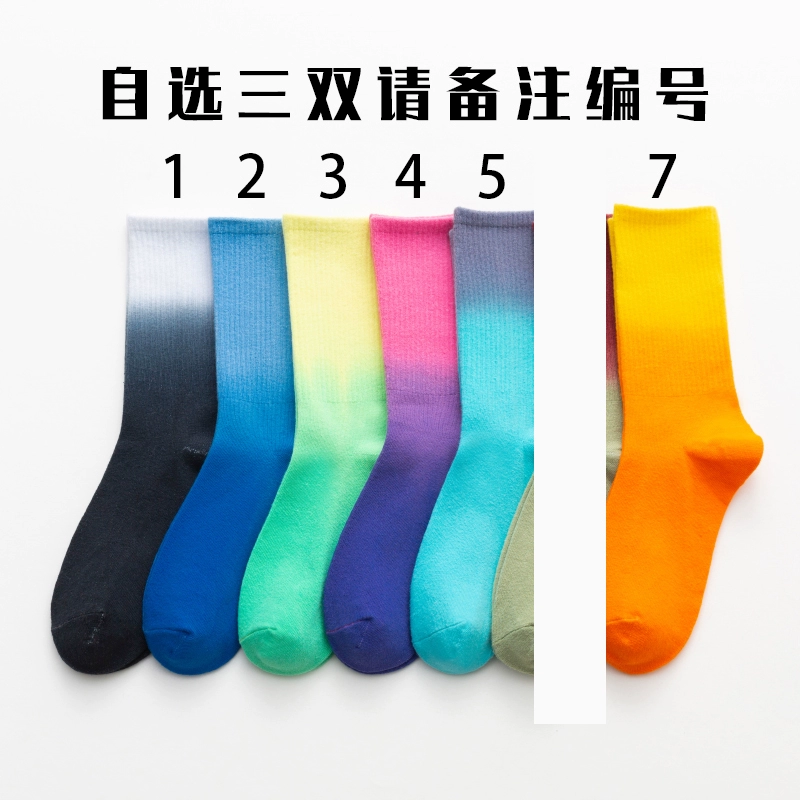 Socks men's tie-dye gradient skateboard pure cotton sports socks