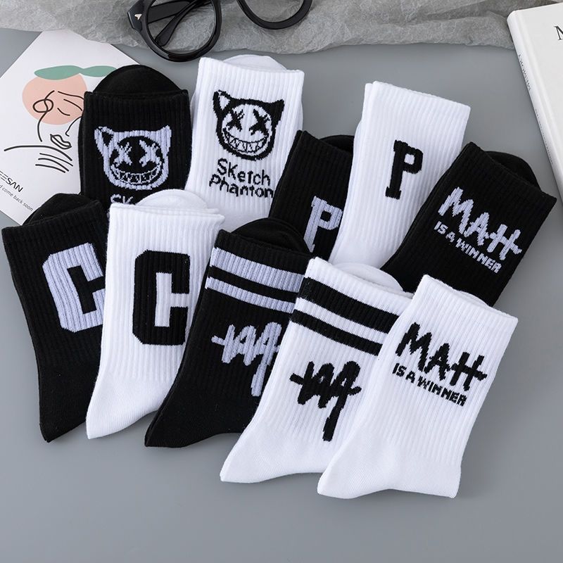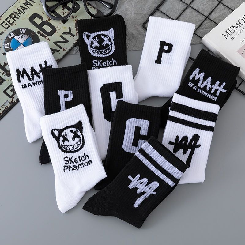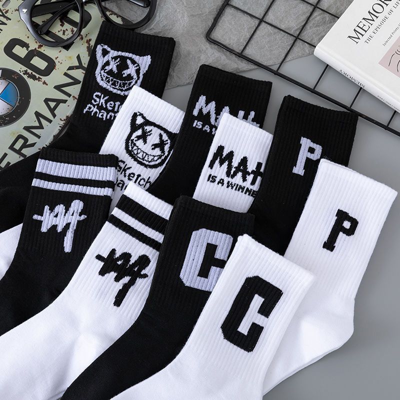 | nameOriginal | Socks Men's Trendy All-match Student Mid-tube Socks Autumn and Winter ins Black and White Men's Breathable Alphabet Sports Basketball Socks |
