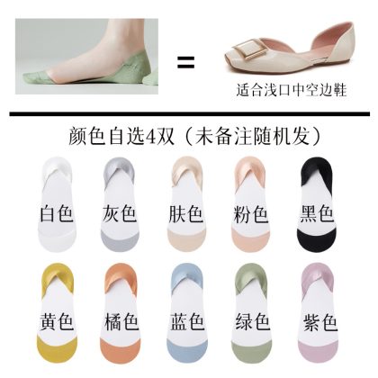 Socks with high heels women’s summer shallow mouth endless invisible boat socks thin non-slip heel off summer