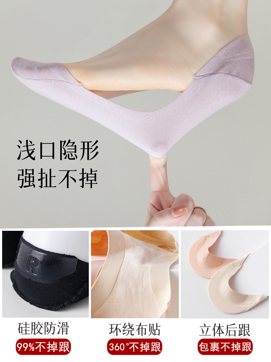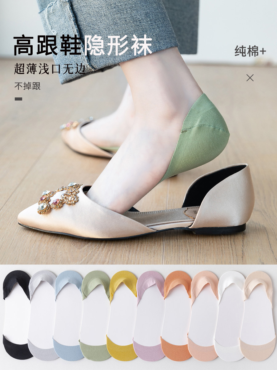 Socks with high heels women's summer shallow mouth endless invisible boat socks thin non-slip heel off summer