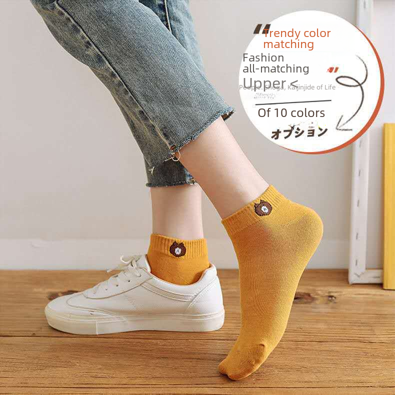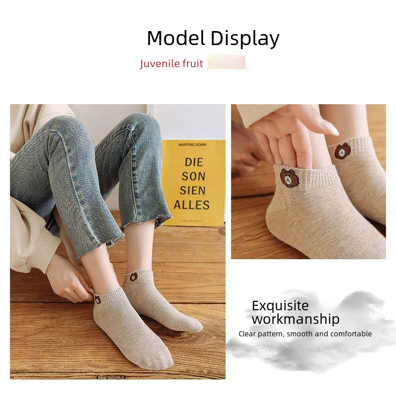 | nameOriginal | Socks women spring and summer seasons ins bear socks ladies low-end shallow-mouth boat socks short socks stall supply wholesale socks |