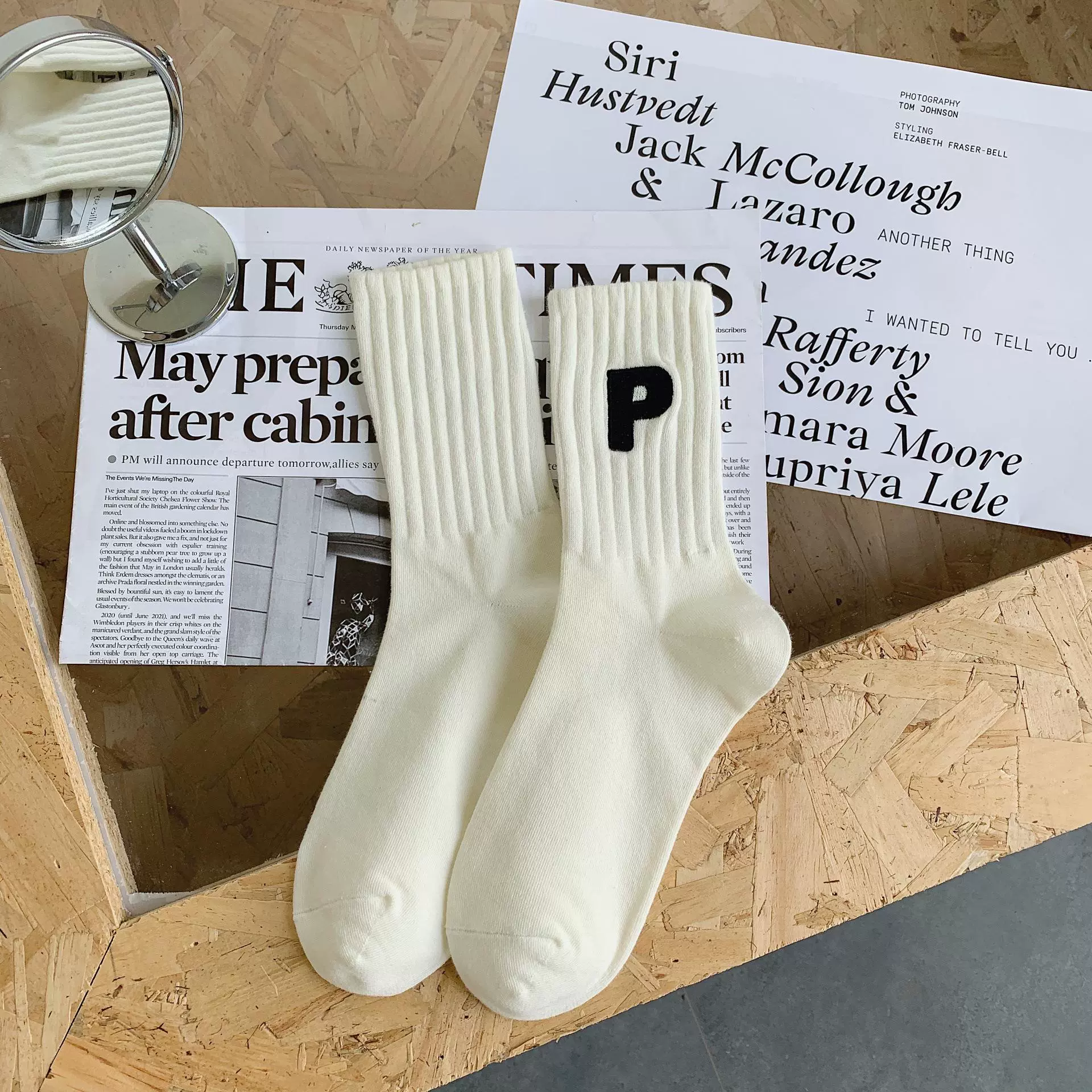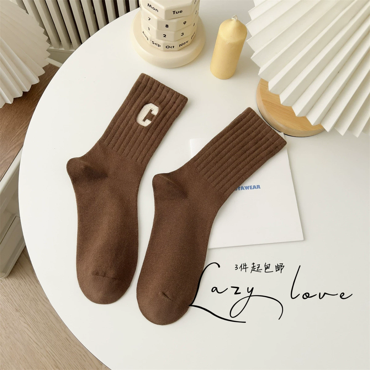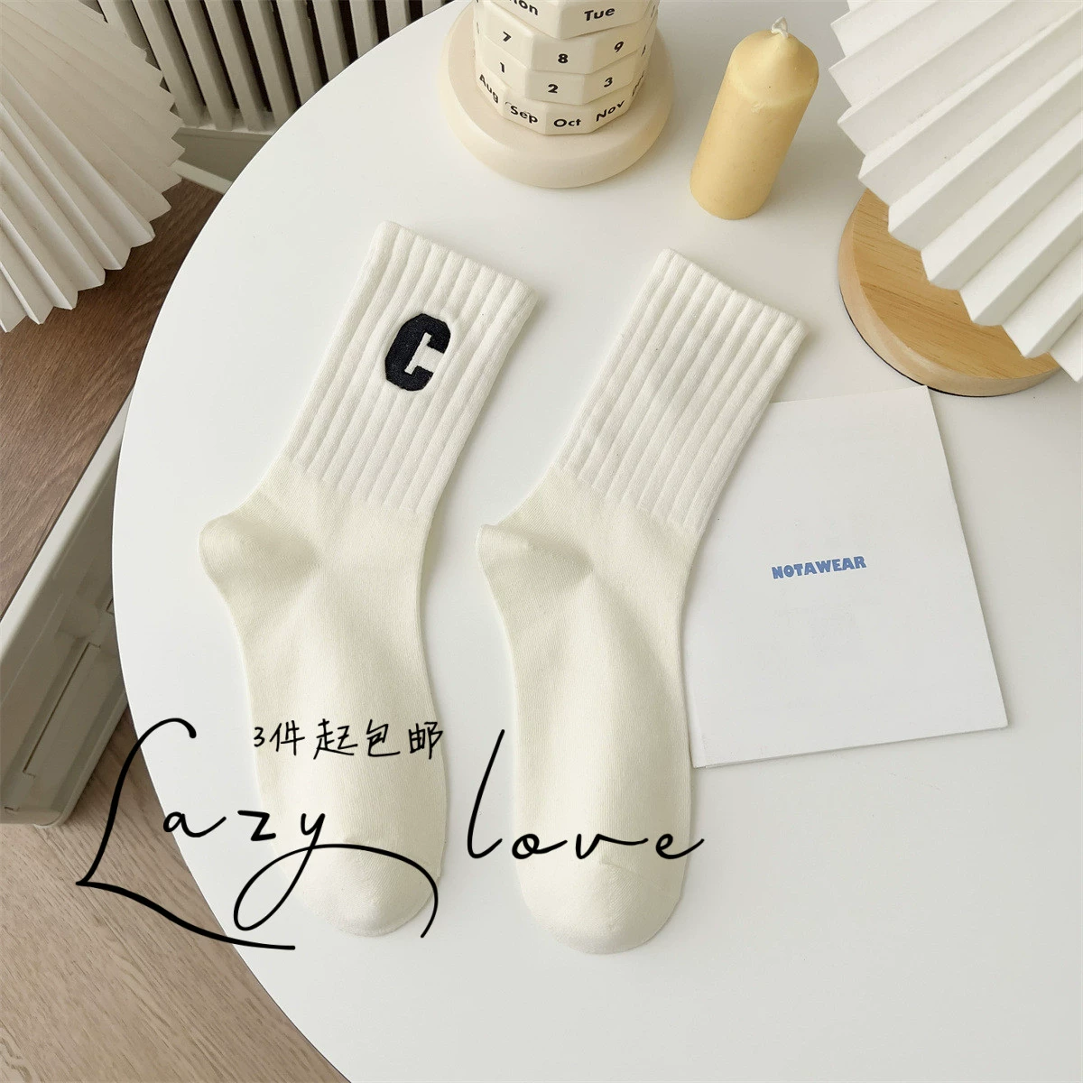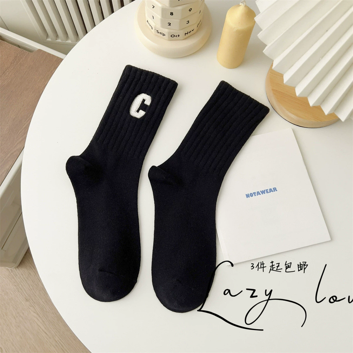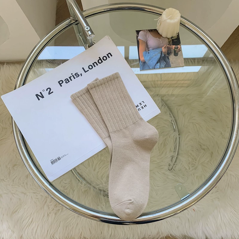 Socks women’s black and white basic mid-calf sweat-absorbent adult socks