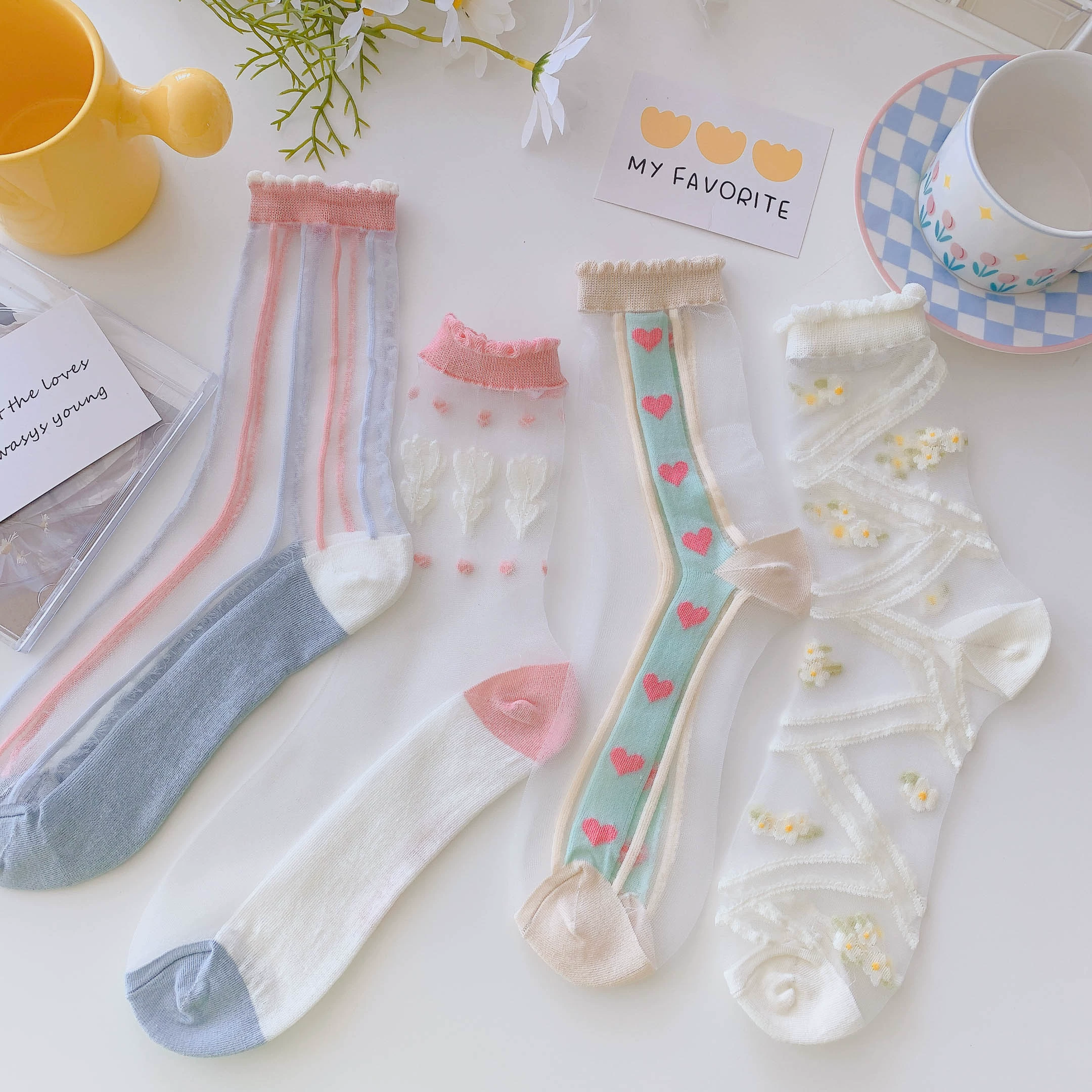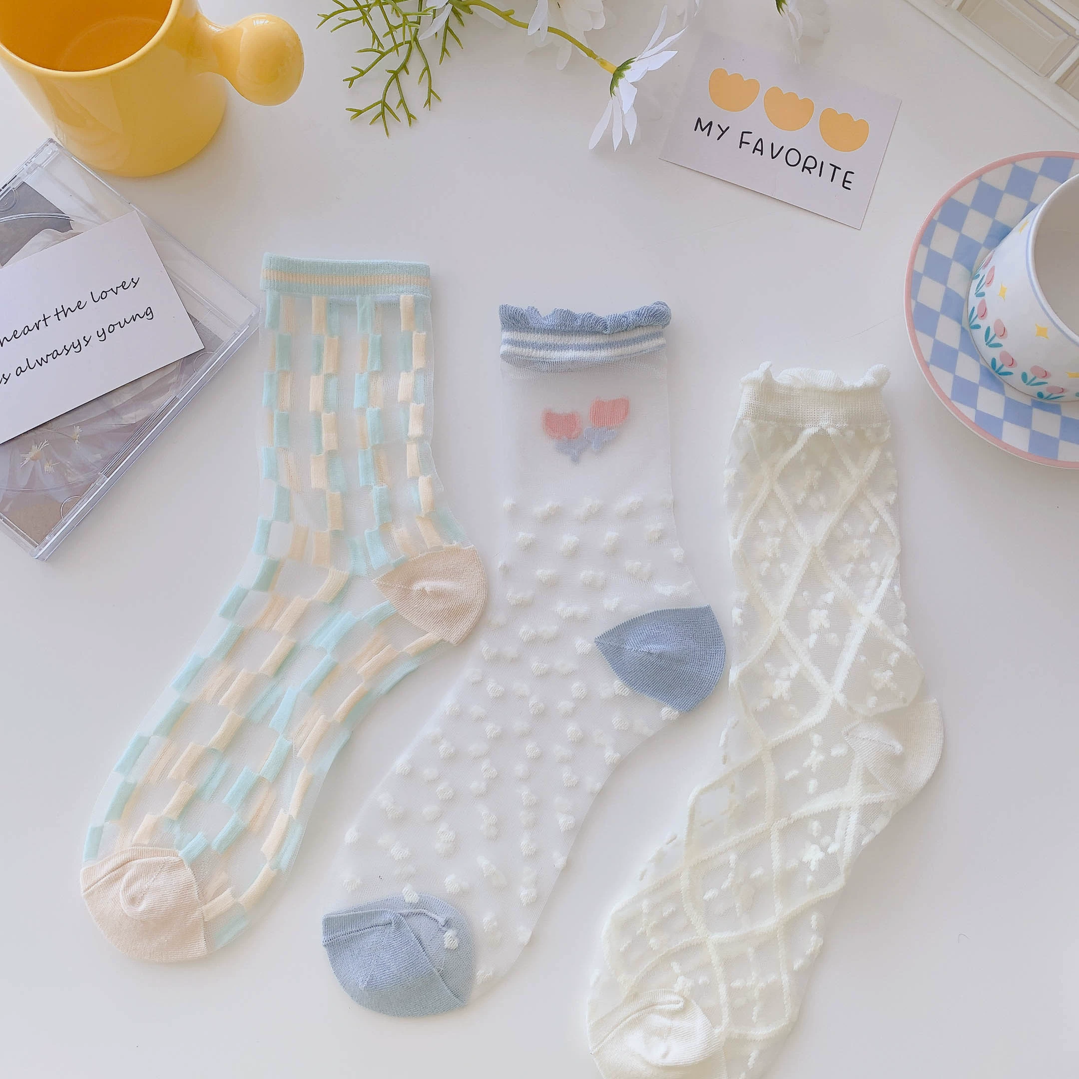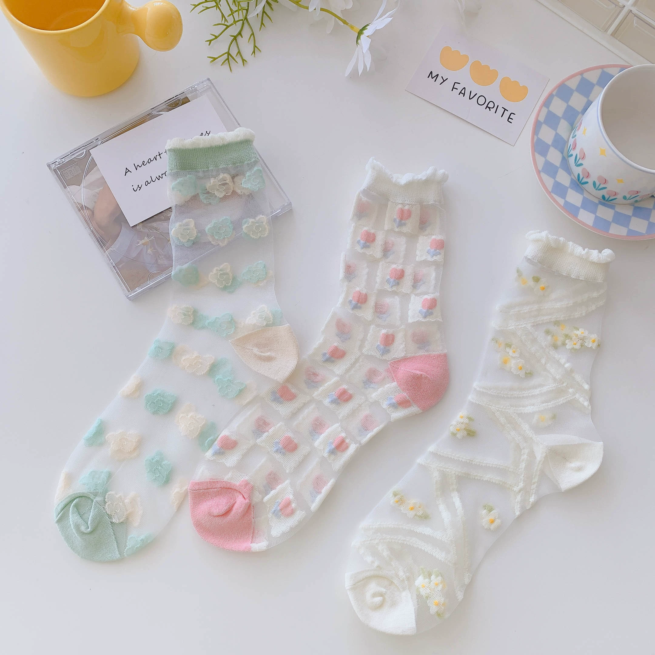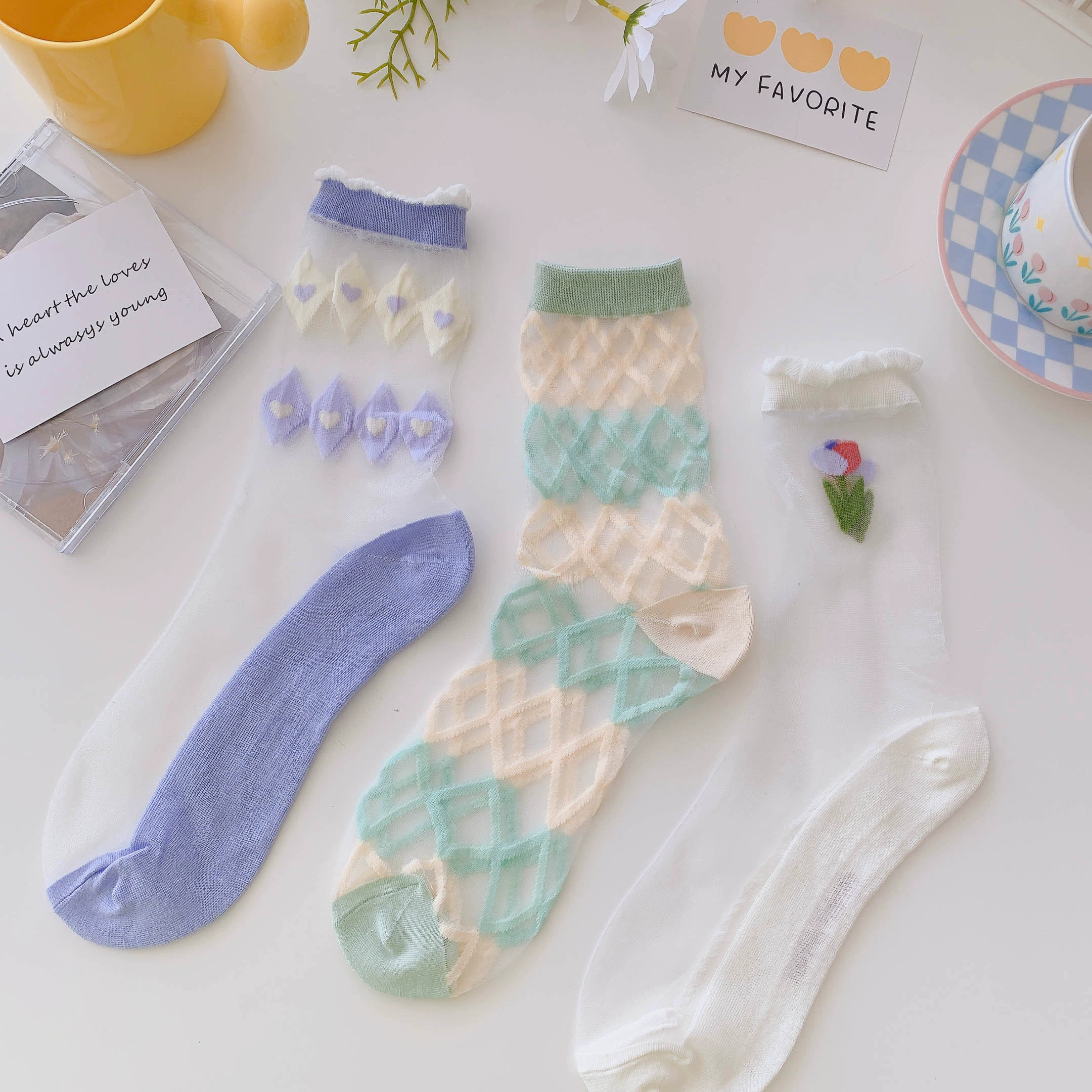 Socks women's crystal clear glass sandals summer socks